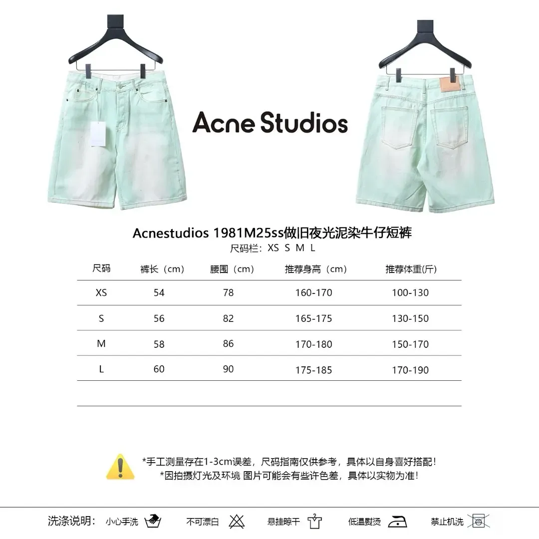 Acnestudios 1981M25ss Distressed Glow-in-the-Dark Muddy Dye Denim Shorts