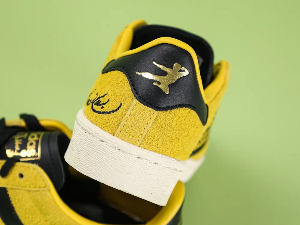 The adidas Jabbar Bruce Lee “Game of Death” Reps pays homage to a martial arts legend and is inspired by Bruce Lee’s iconic yellow and black jersey. It brings the spirit of kung fu into basketball culture and pays homage to this timeless legend. A special collaboration within the adidas Jabbar collection, this Bruce Lee collaboration blends the classic silhouette of a retro ’70s basketball shoe with contemporary fashion, reinterpreting a cultural icon.