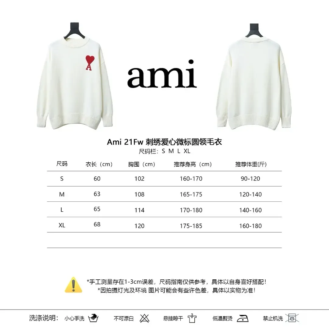 AMI 21Fw Pullover With Embroidered Heart Logo And Round Neck