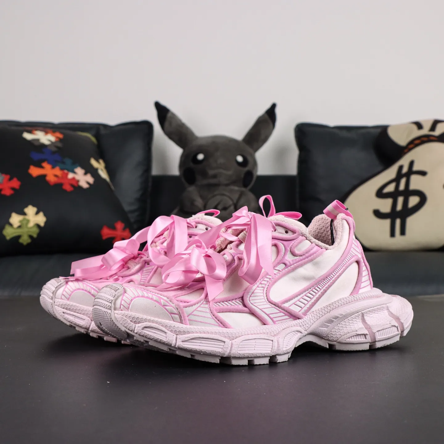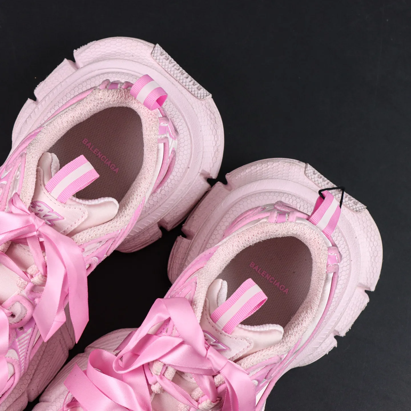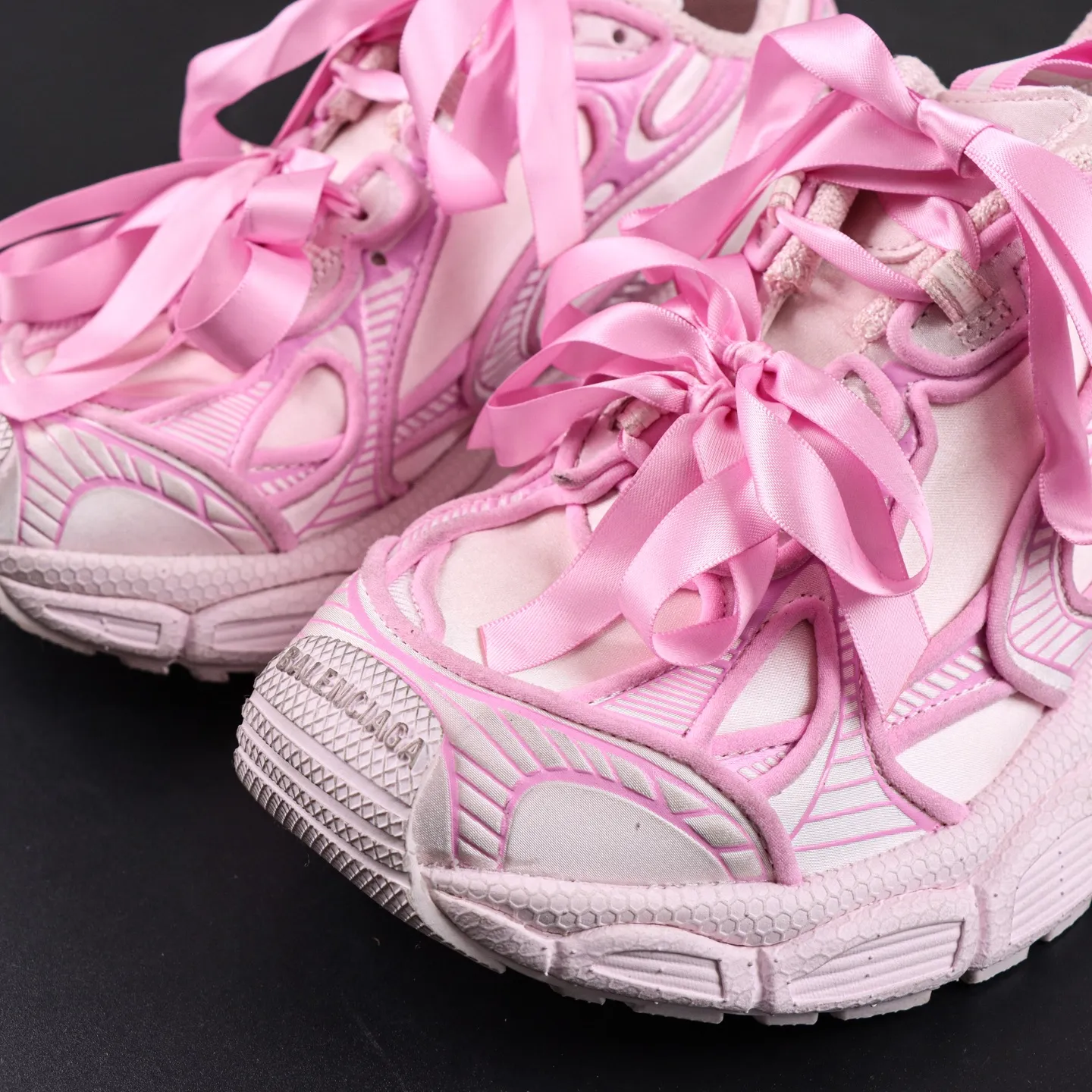Balenciaga 3XL Used-Look Platform Sneakers with Round Toe and Laces in Pink
