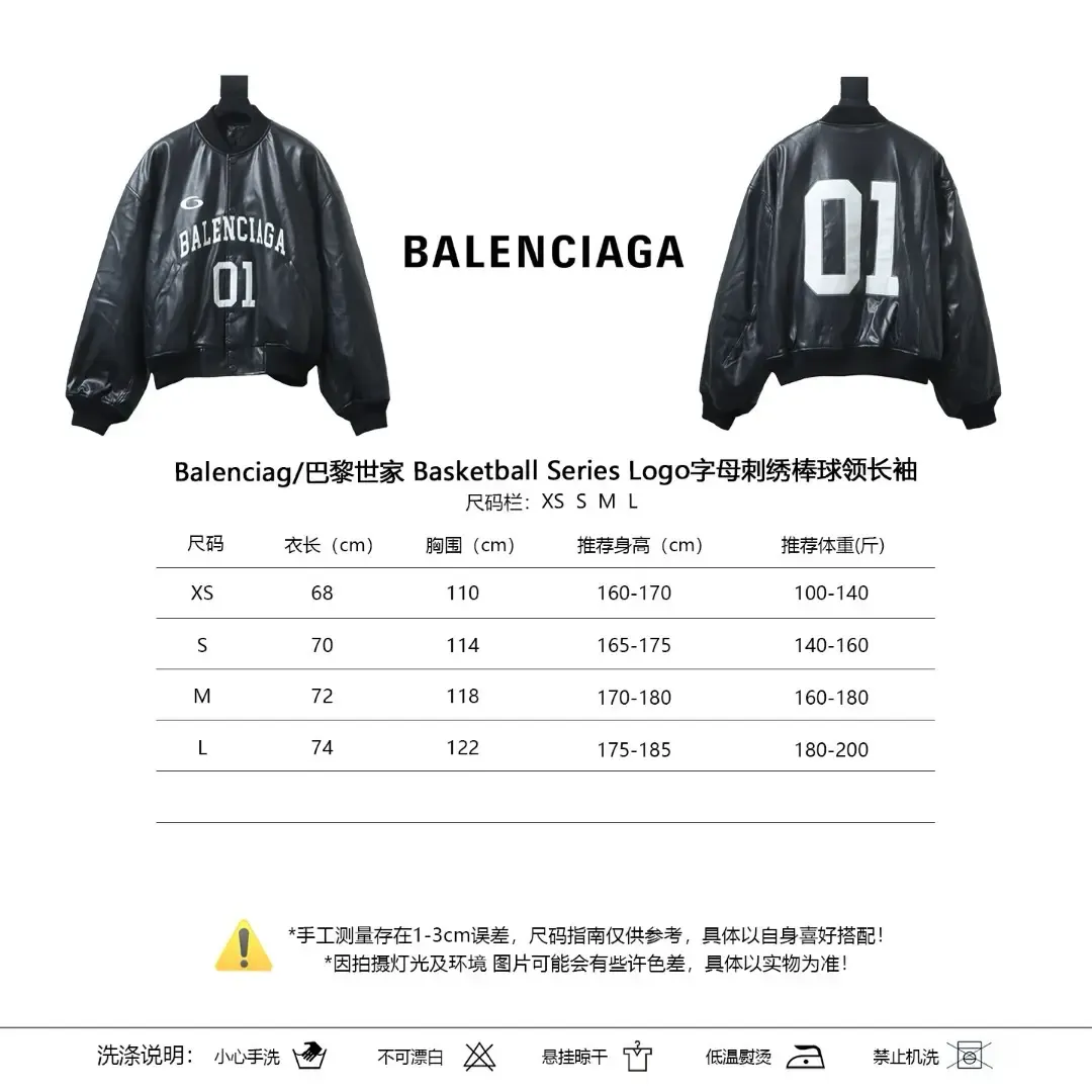 Balenciaga Basketball Series Logo Embroidered Baseball Collar Coat Pilot