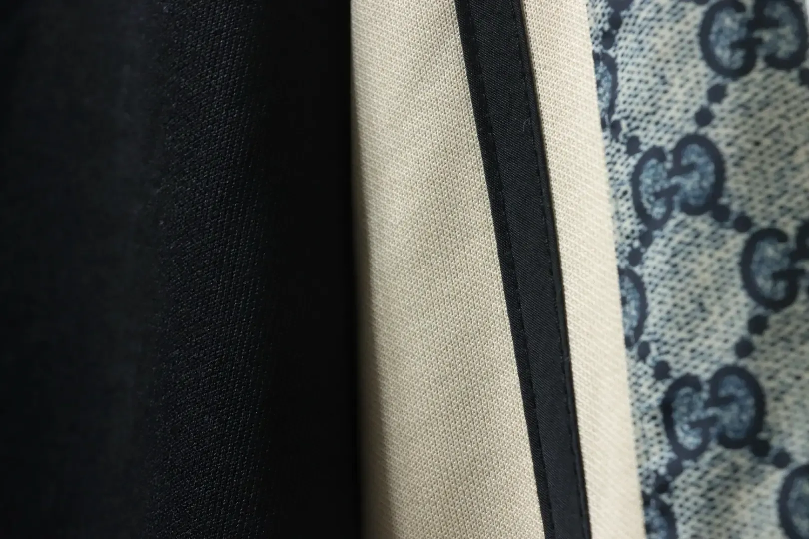 • Der seitliche Logo-Print ist marineblau, nicht das übliche Schwarz. Alle Beschläge sind maßgefertigt, das Muster digital erstellt und zugeschnitten.