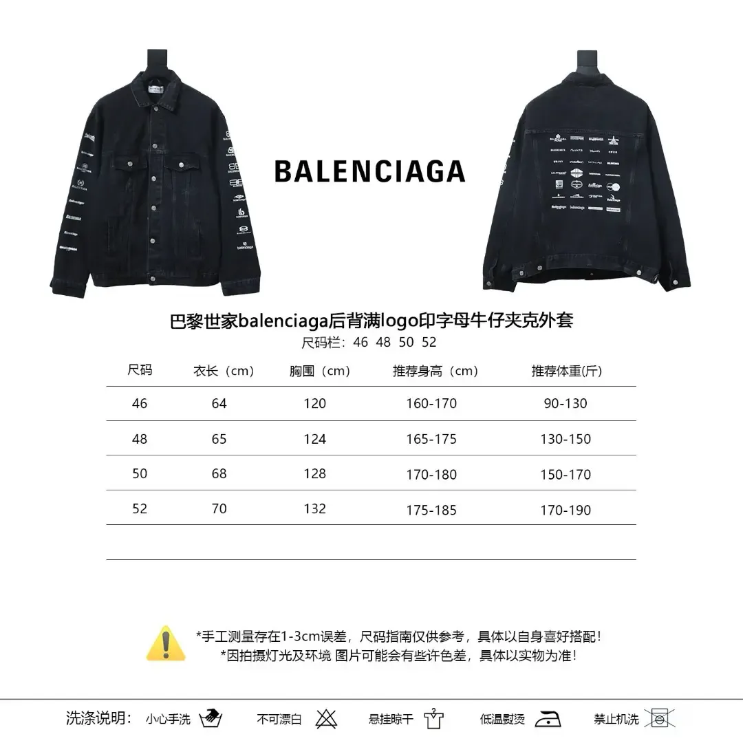 -23%- Balenciaga P280 denim jacket with all-over logo print on the back