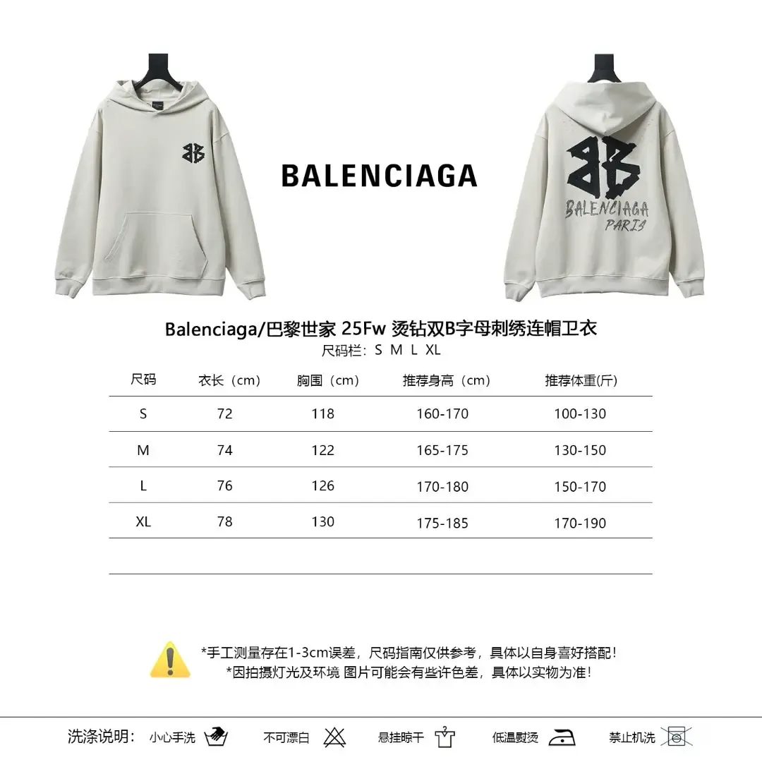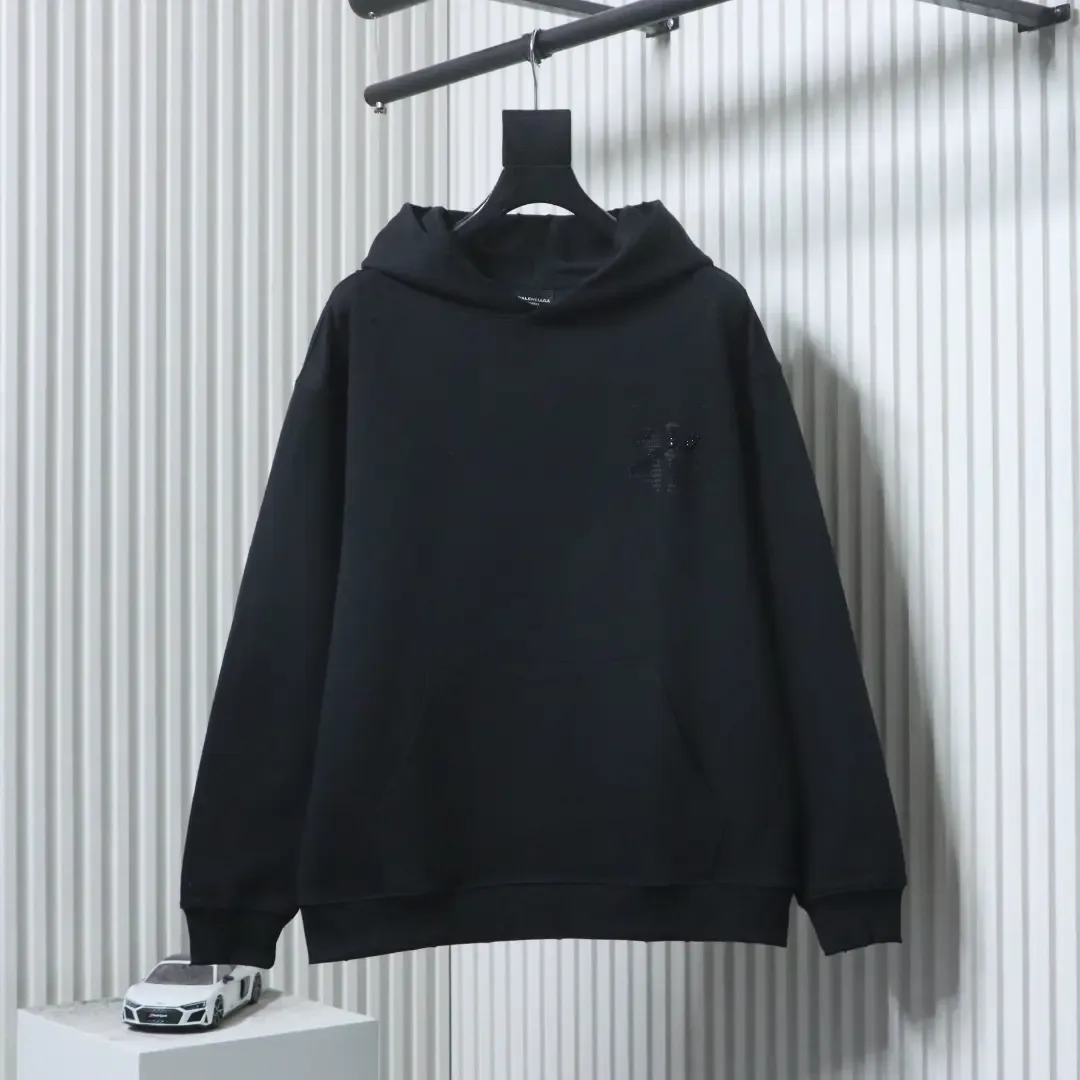 Balenciaga Hoodie With Rhinestones And Double-B Embroidery