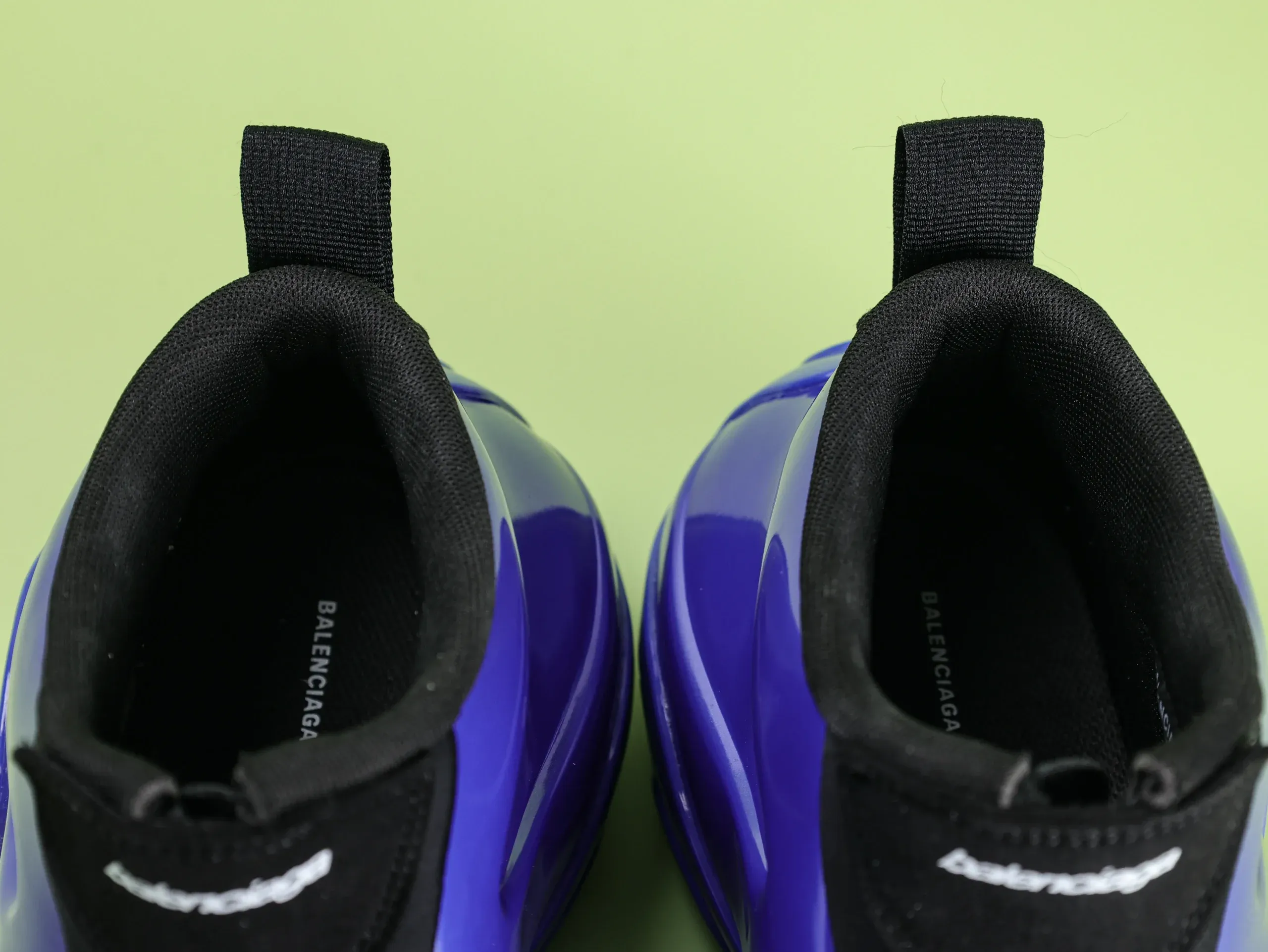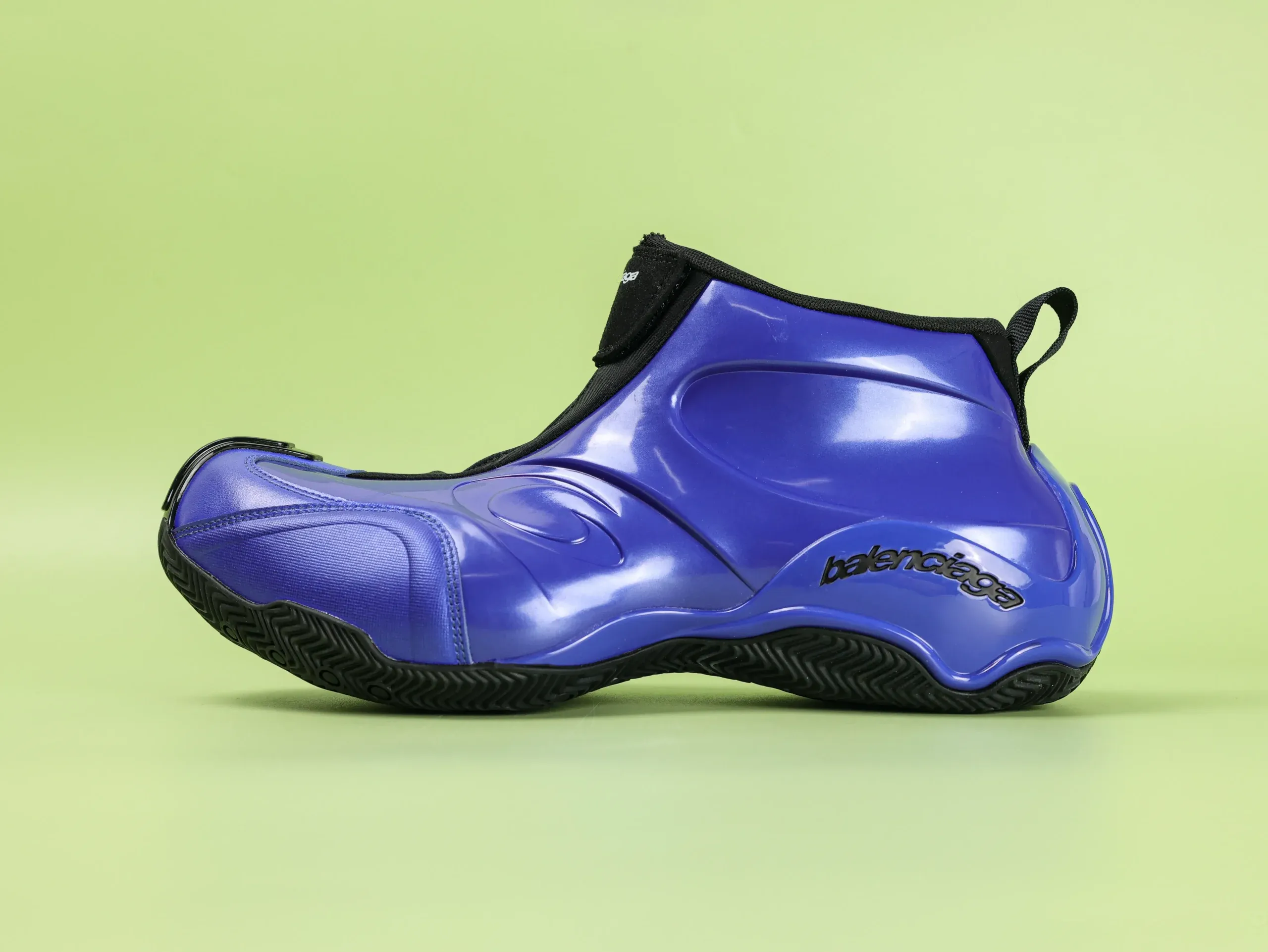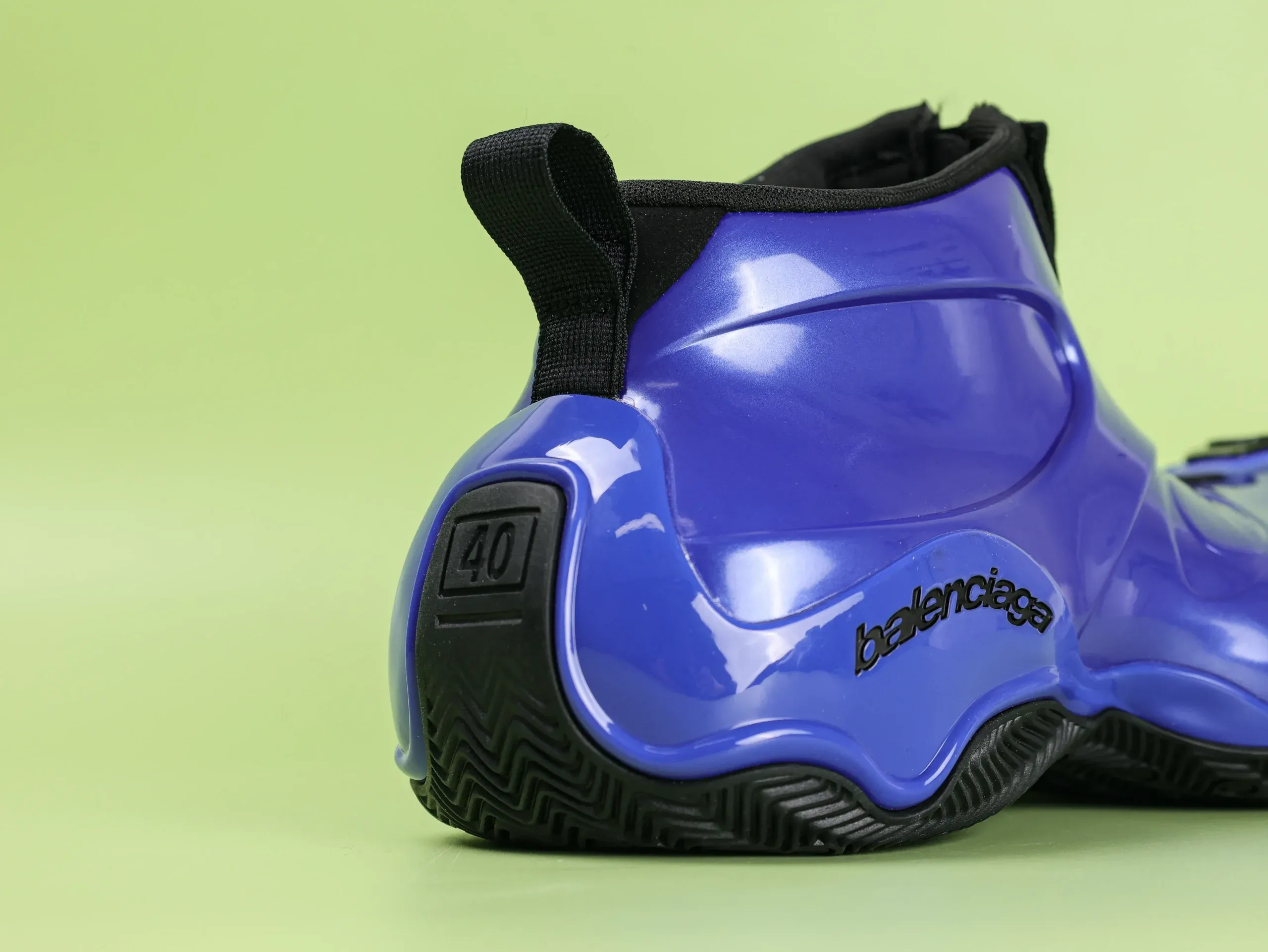 The Balenciaga men’s basketball shoe in metallic blue breaks with convention and captivates with its unique metallic blue design, creating an unparalleled visual impact. The interplay of metallic sheen and deep color gives this basketball shoe a technological and futuristic touch, making it a real eye-catcher on the court and on the street.