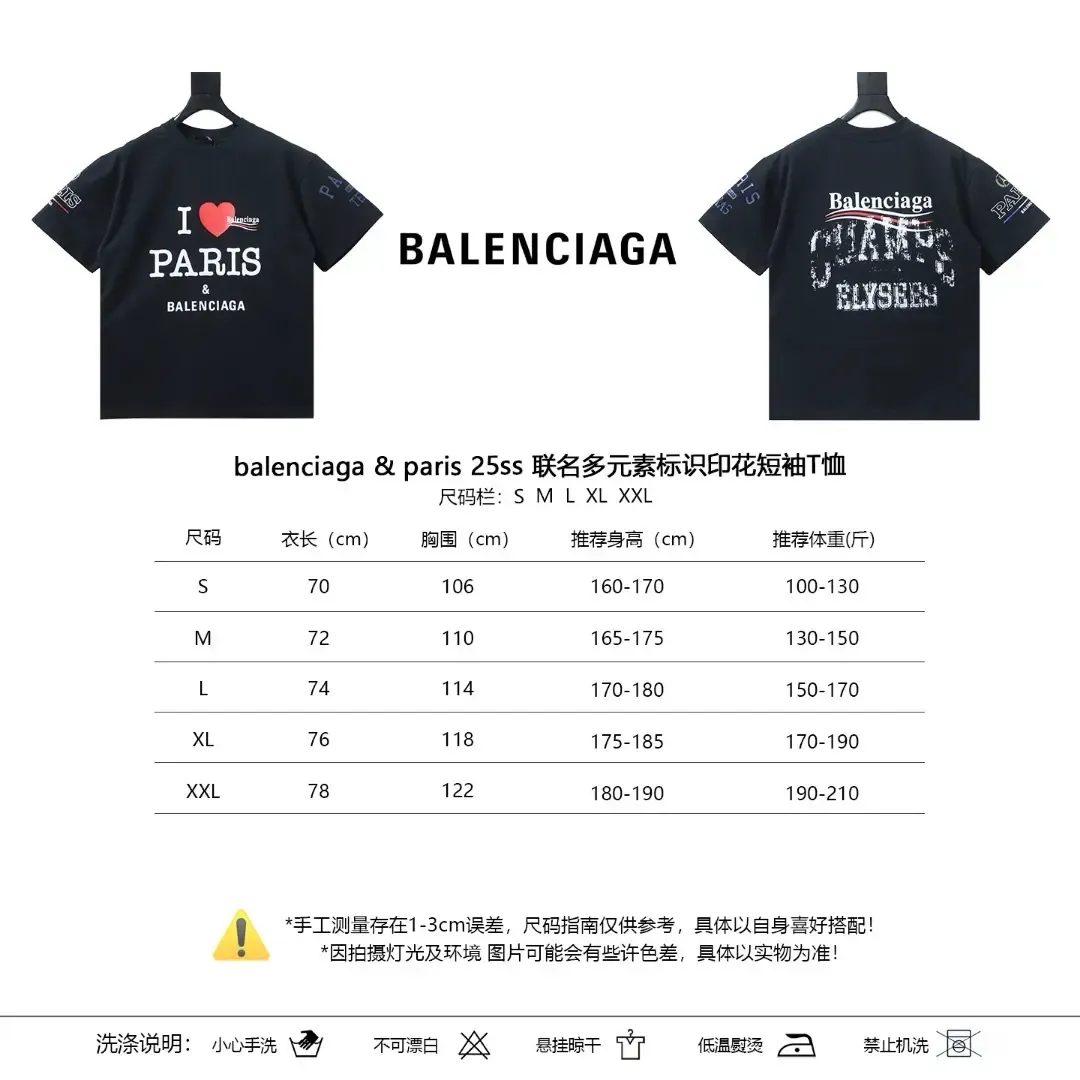 Balenciaga & Paris 25ss collaboration short-sleeved T-shirt with multi-part logo print