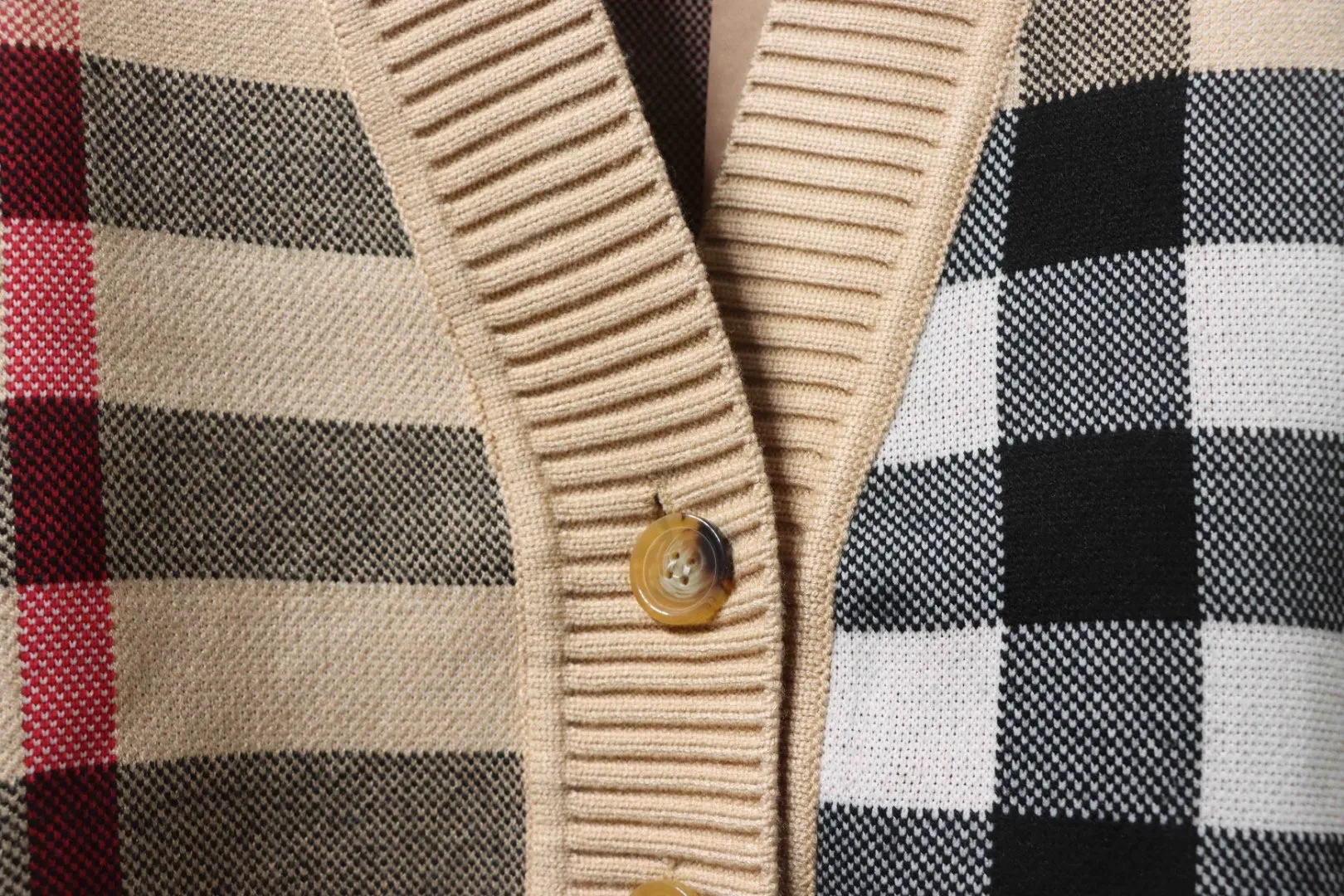 BU Checked Wool Jacquard Cardigan With High Collar