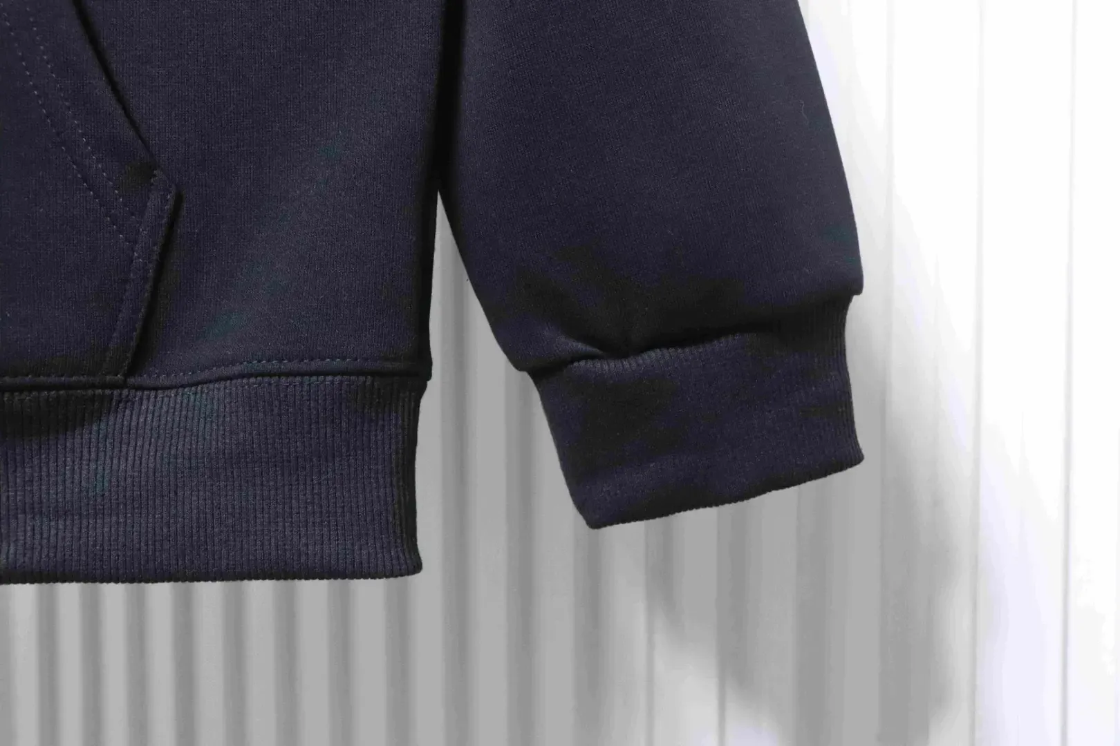 • The structure of the dense material is clearly visible. Softness and comfort are paramount, but the perfect balance of breathability and warmth is a pleasant surprise. It doesn’t feel stuffy and is also windproof. This sweatshirt is an investment in quality.