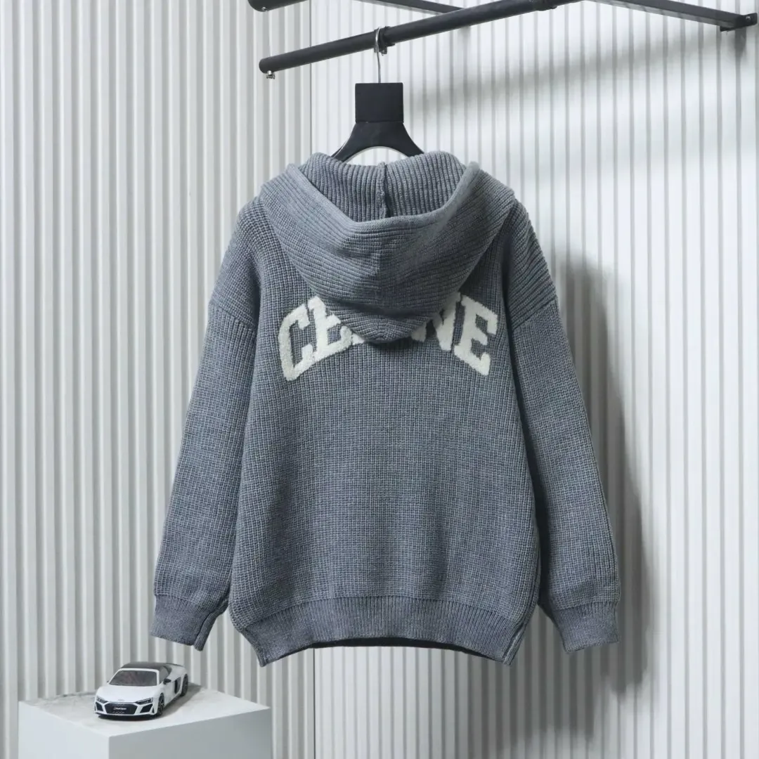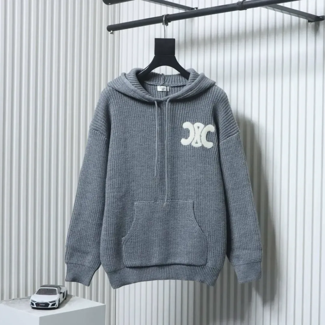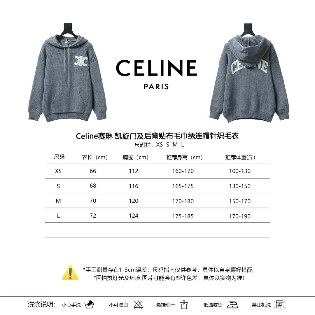 Celine Terrycloth Hoodie With Arc De Triomphe And Back Applique With Embroidery
