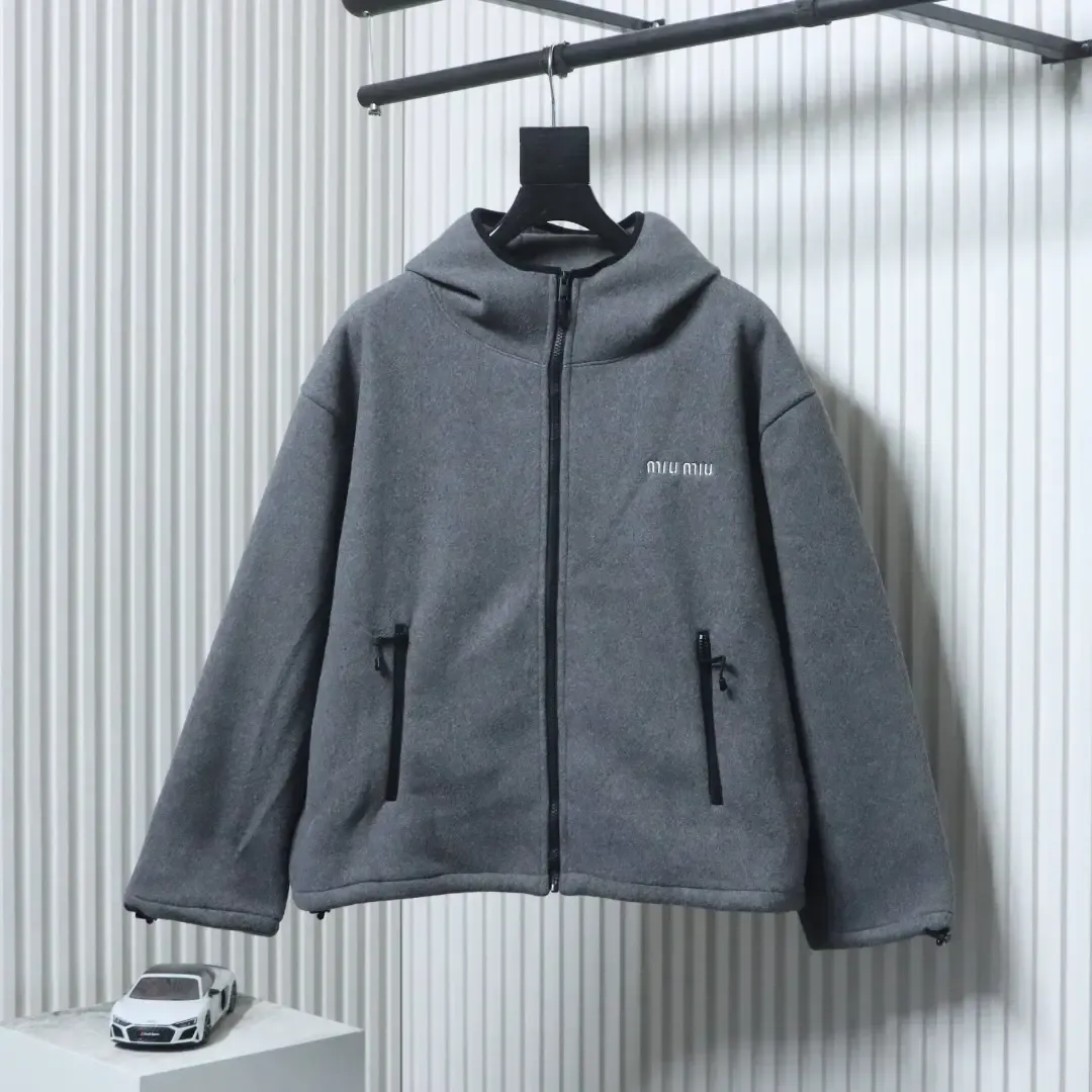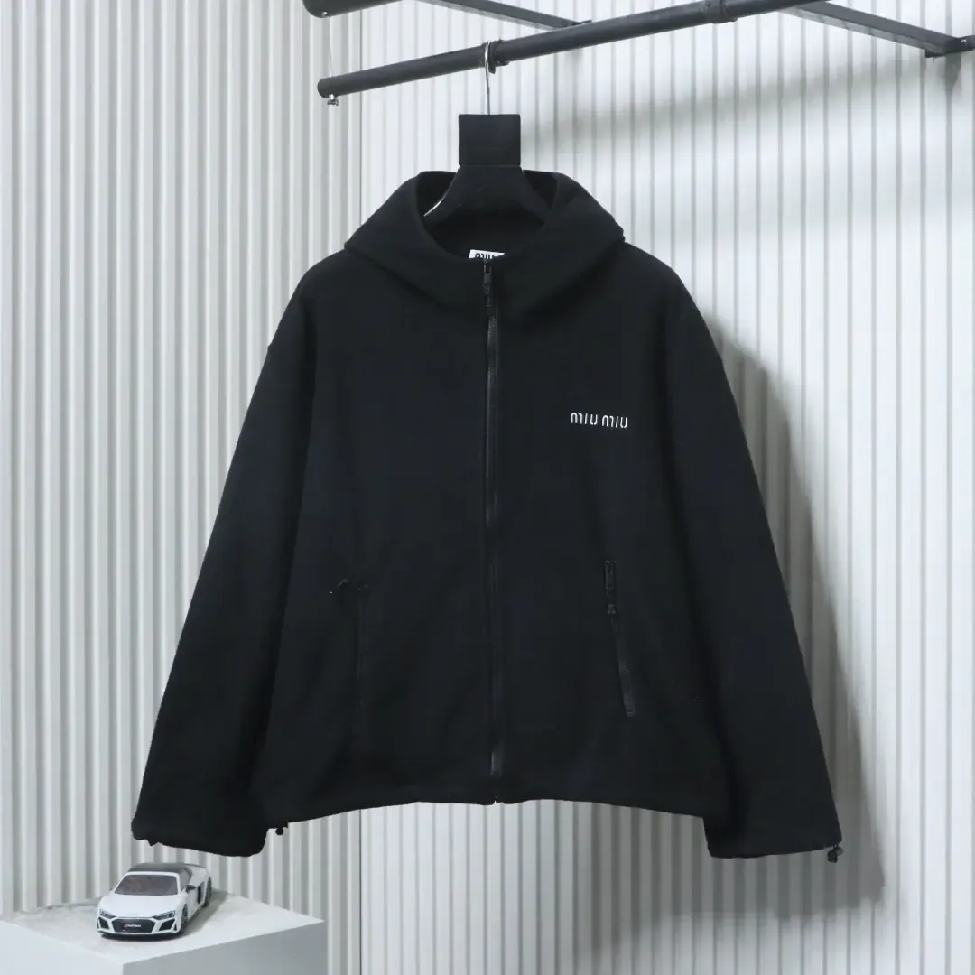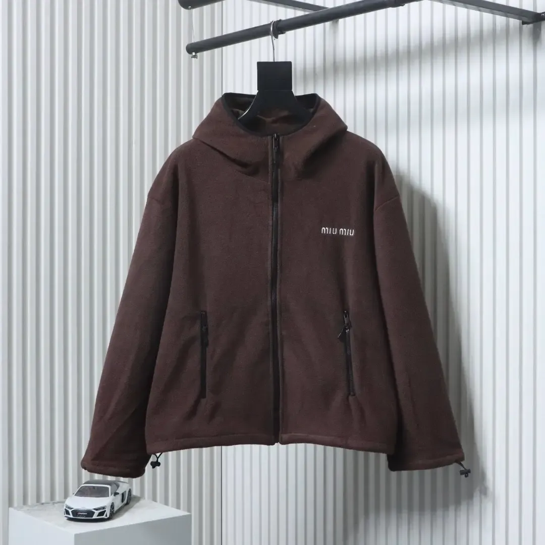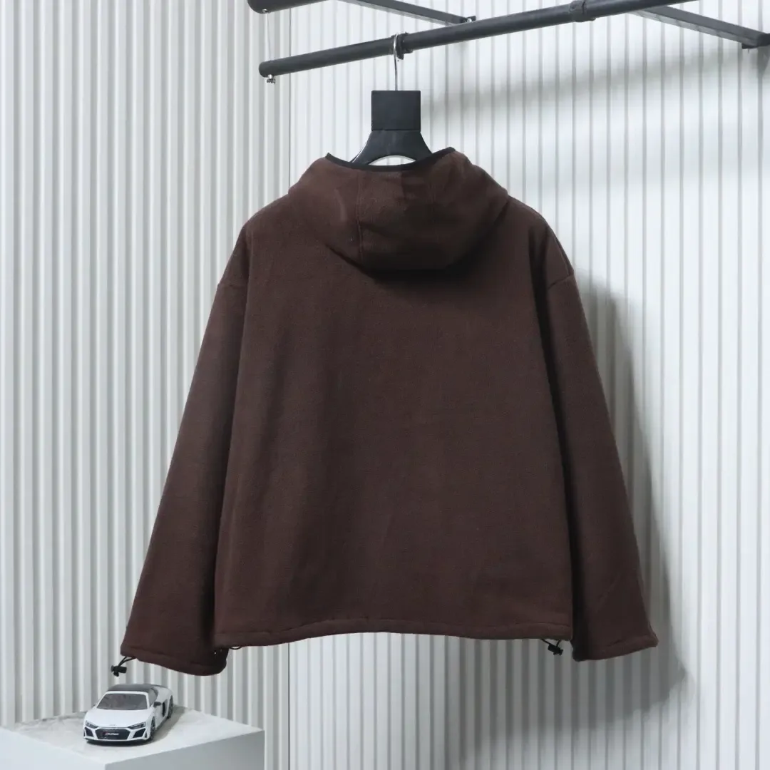 Fleece Jacket With Hood And Zipper, Embroidered Logo
