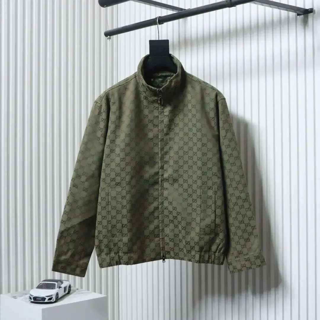 -29%- This new bomber jacket is crafted from forest green canvas and decorated with the iconic GG monogram.