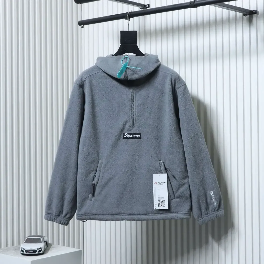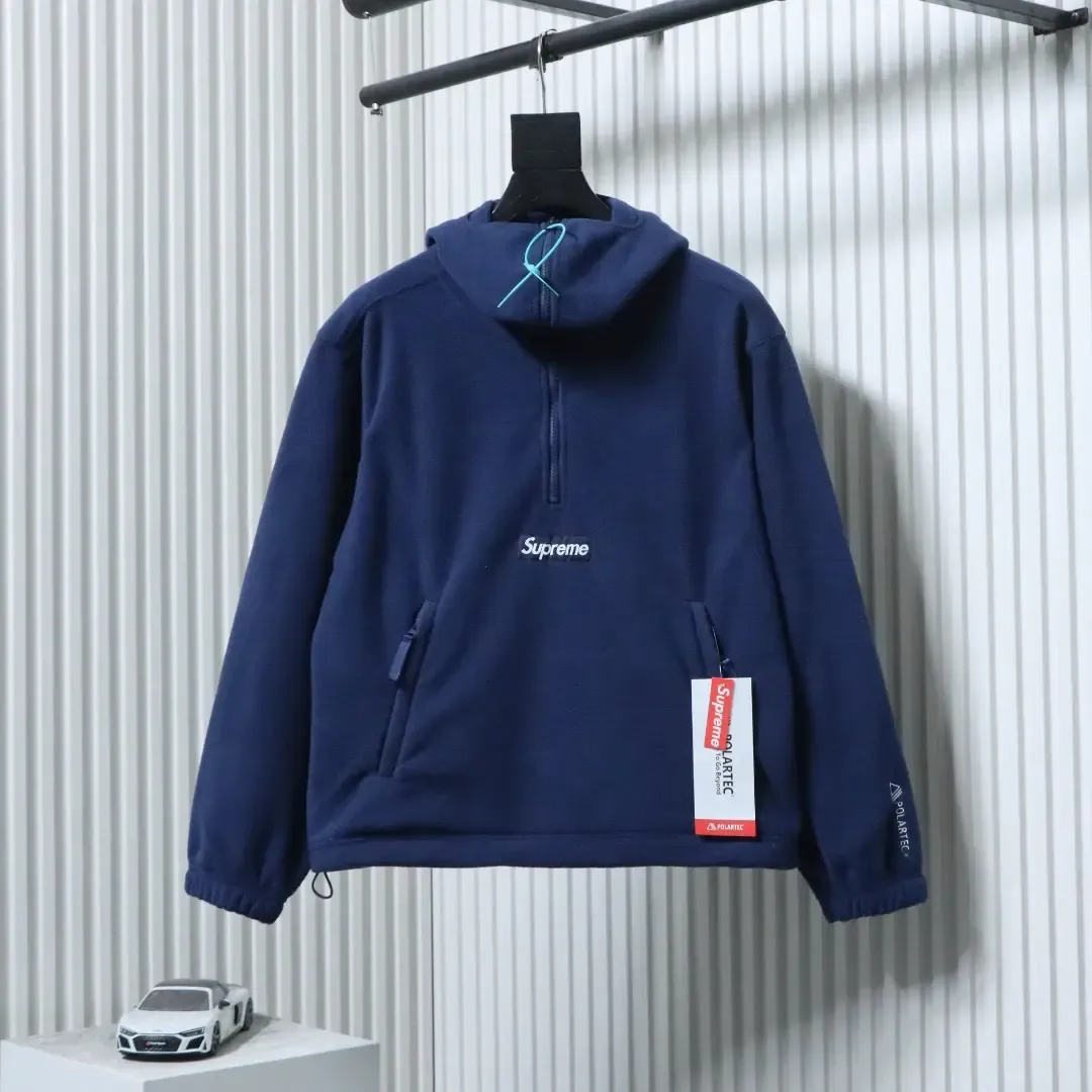 - Embroidered logo on the sleeves. Polartec material is pre-finished.