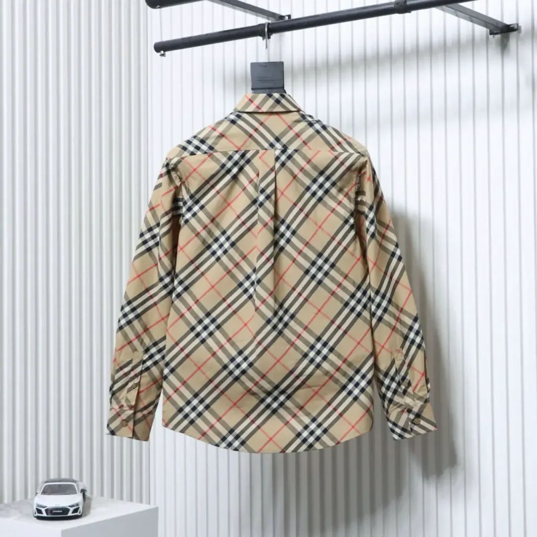 Checkered cotton long-sleeved shirt with printed letter at the hem