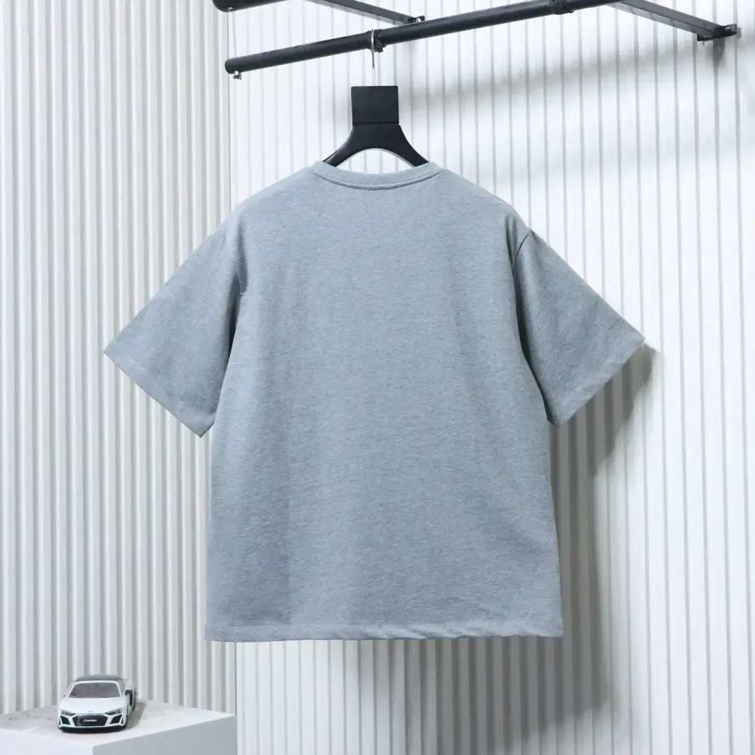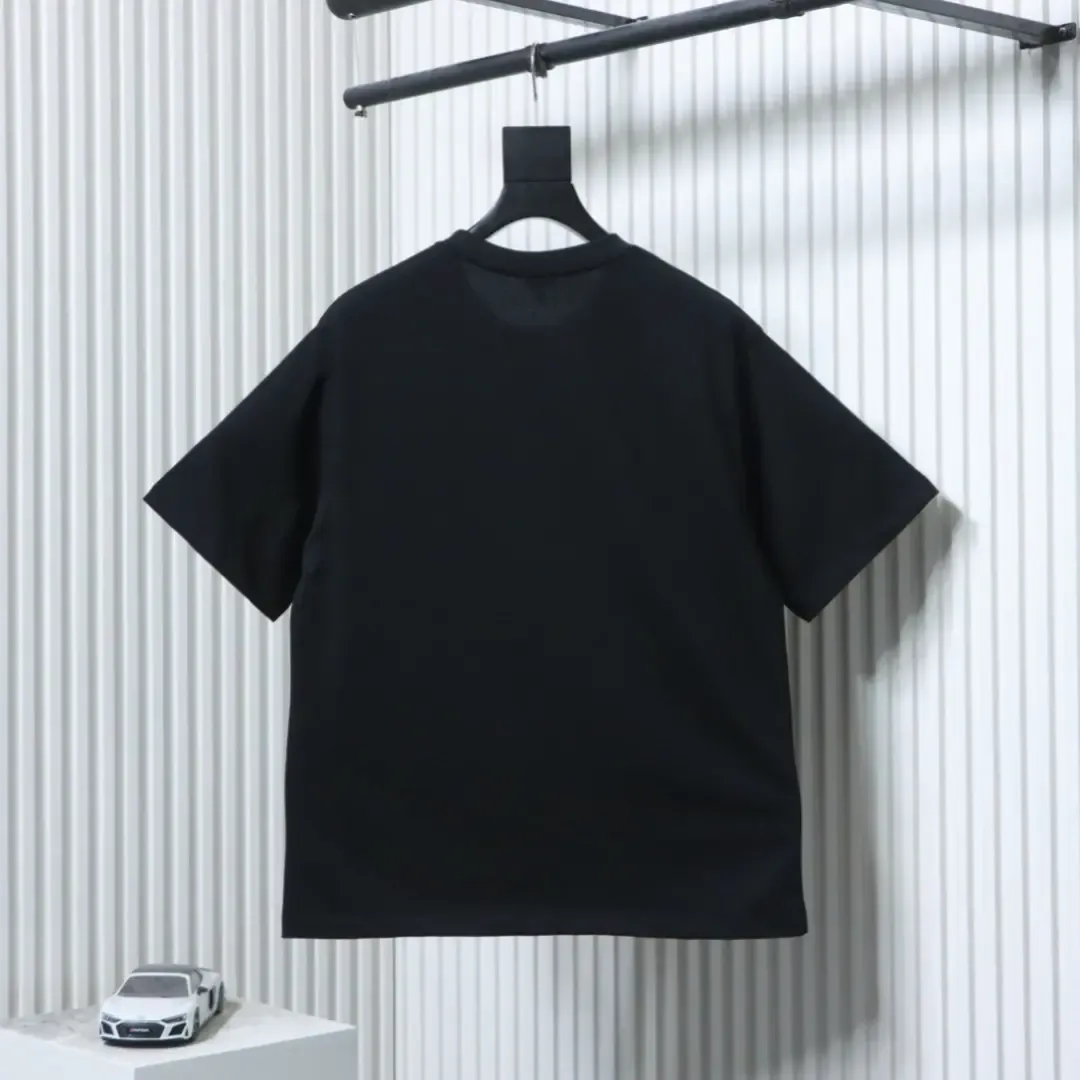 Short-sleeved T-shirt with speckled logo embroidery pattern and triangular logo print on the back