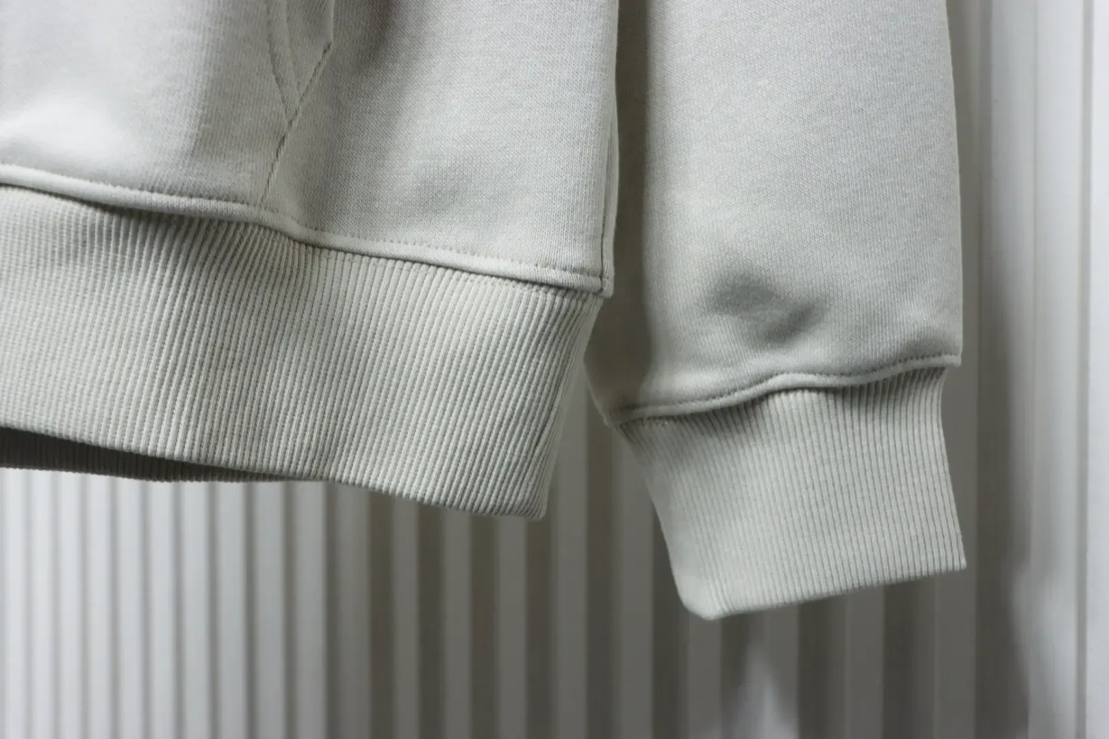 - The hood drawstring is embellished with a leather label. The chest features a triple-stitched, flocked velvet brand logo that gently grows across the chest. Laser-cut leather lettering provides a visual contrast, while the three-dimensional coral fleece lettering feels like sun-warmed sand.