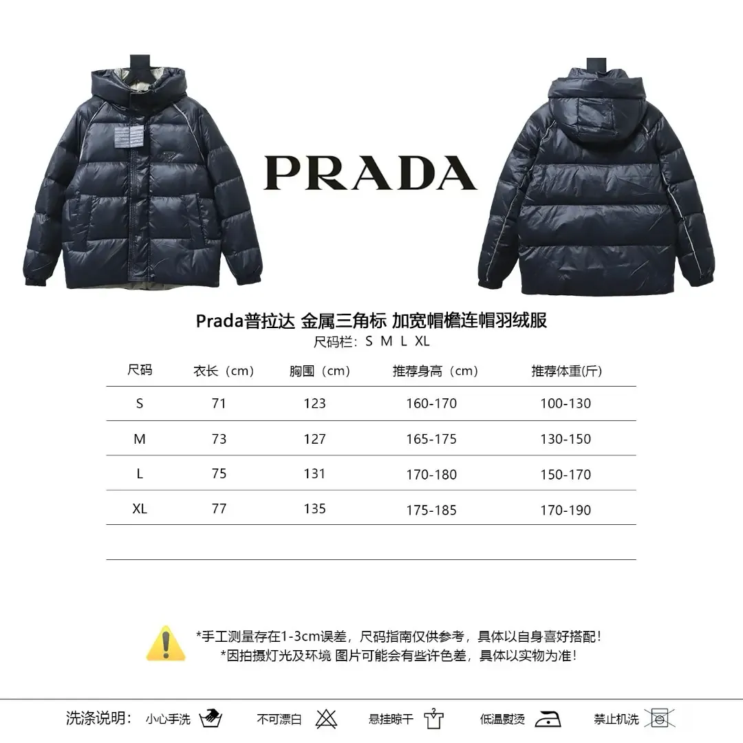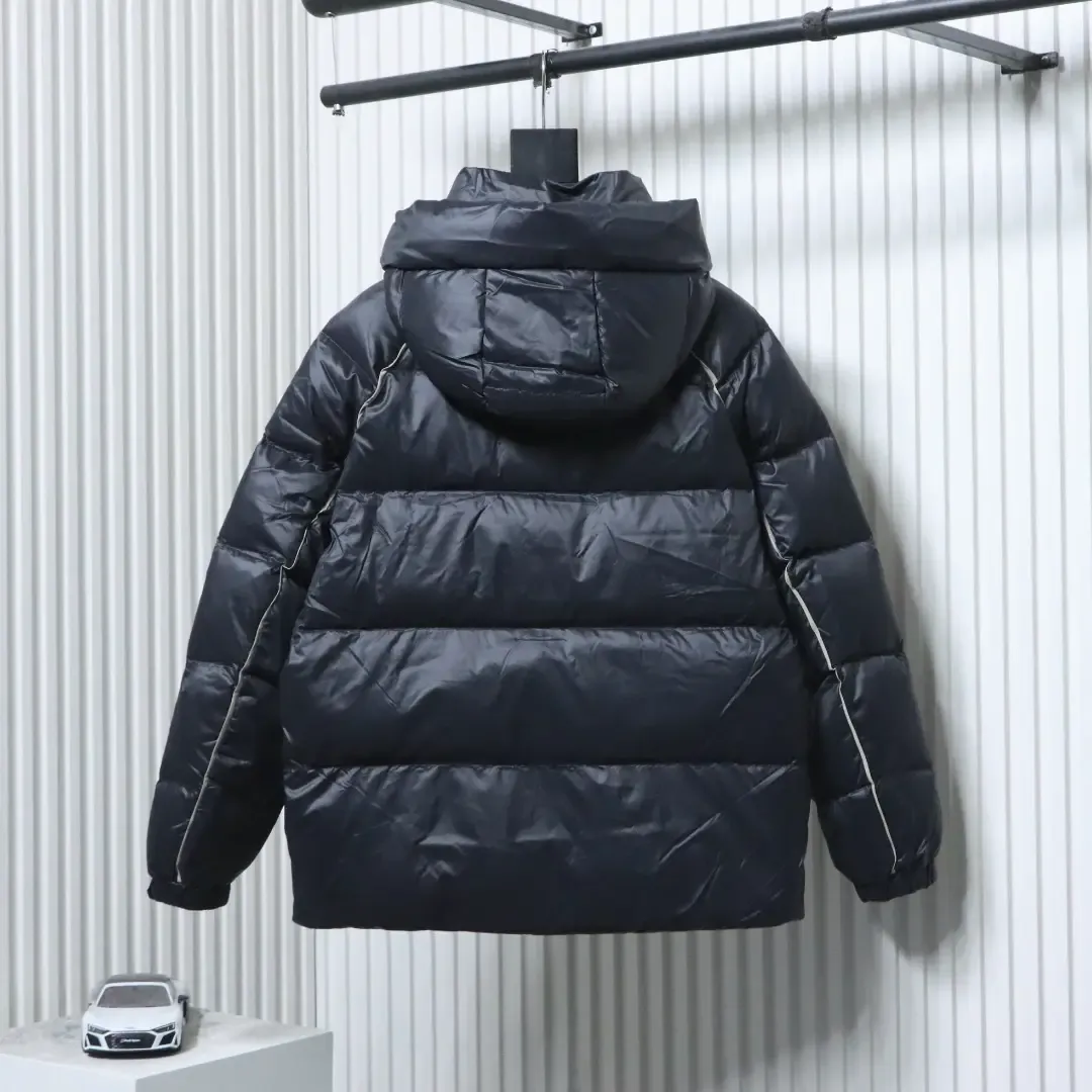 Metallic Triangular Logo Down Jacket With Hood And Wide Brim