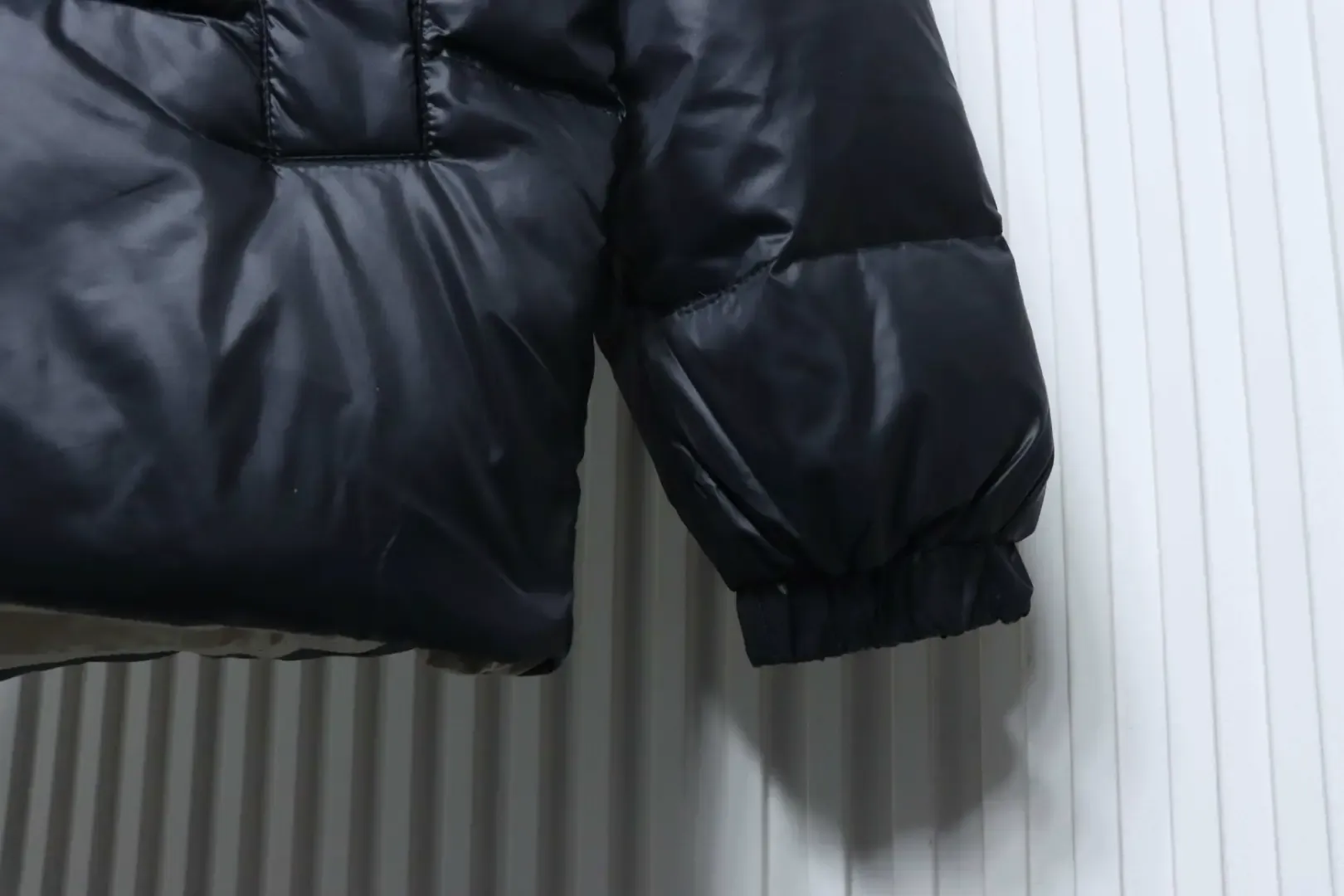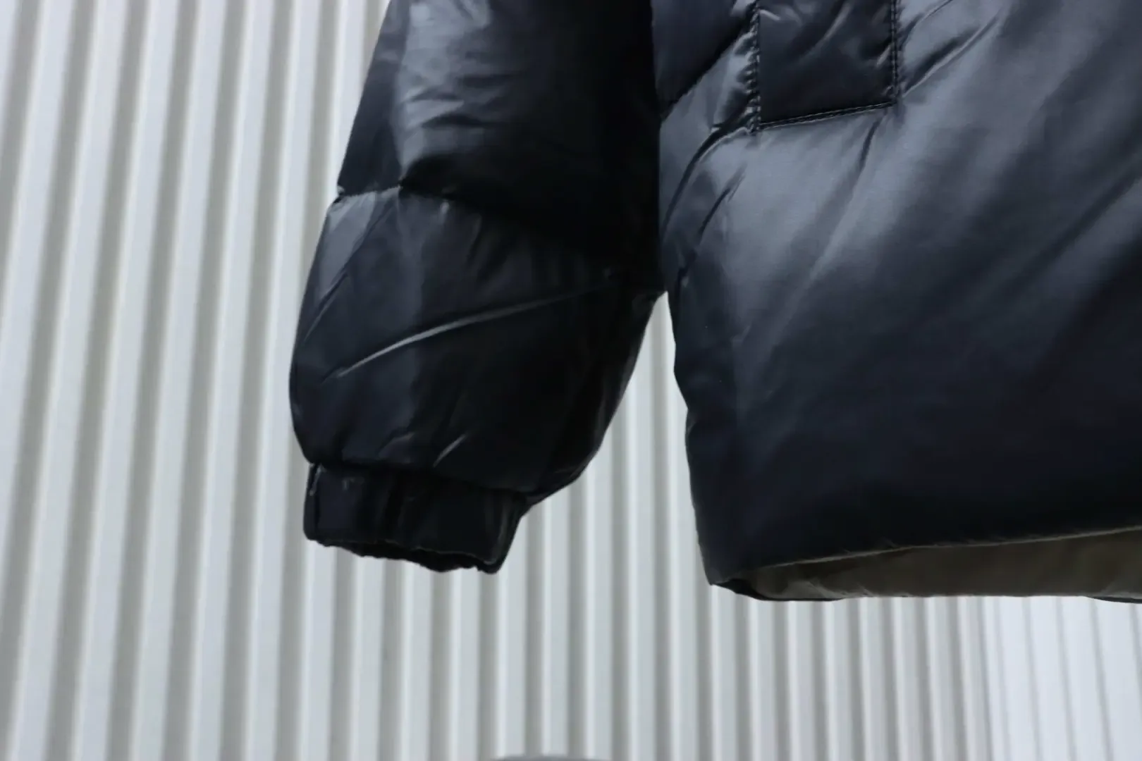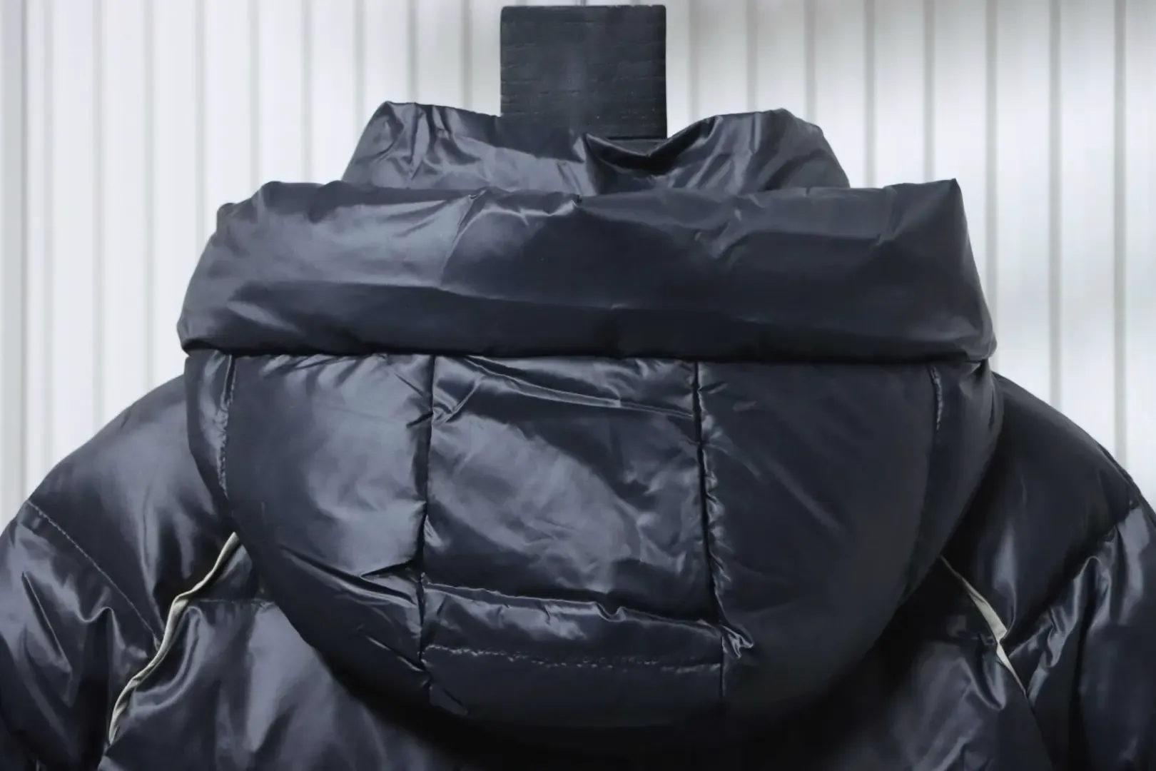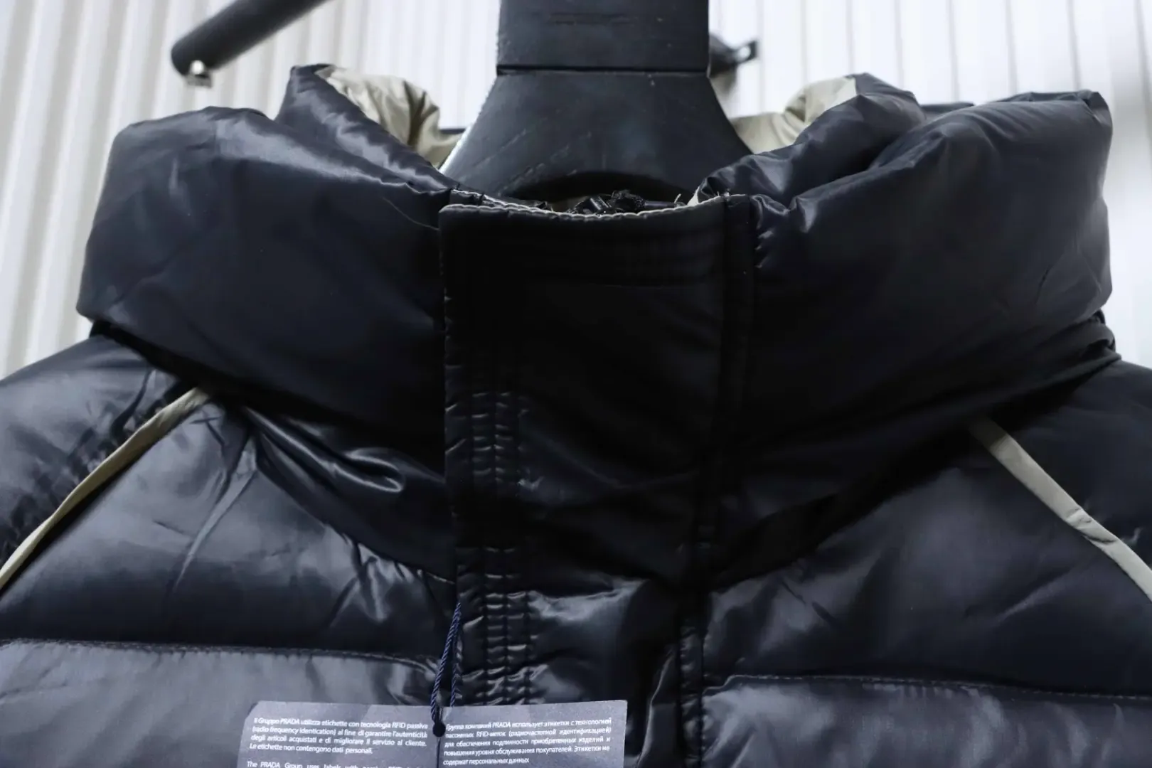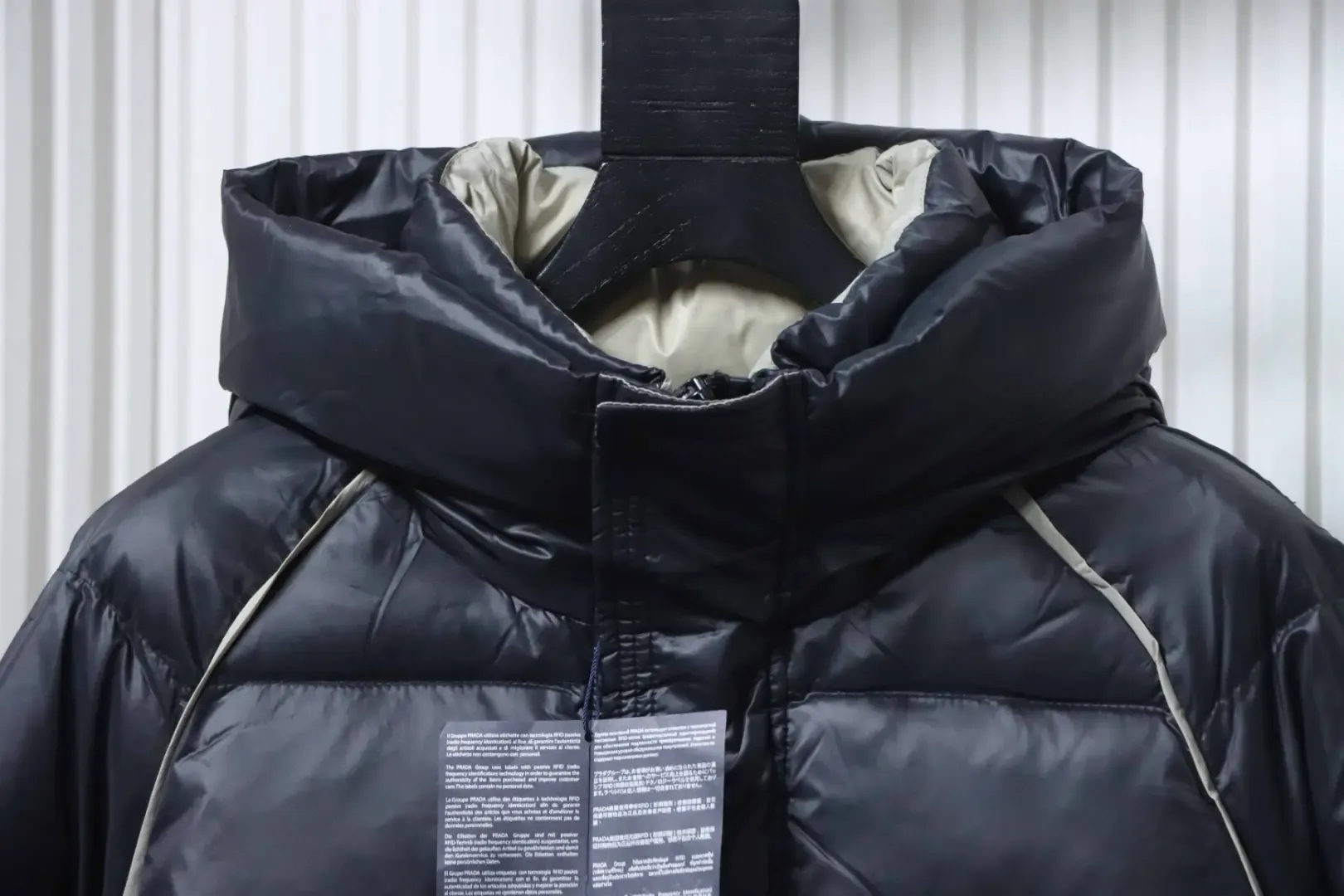 - Fabric made of 100% polyester-nylon with unparalleled shine and feel. Wide hood design, concealed zipper at the button placket, two-tone trim on the body, contrasting colors inside and out.