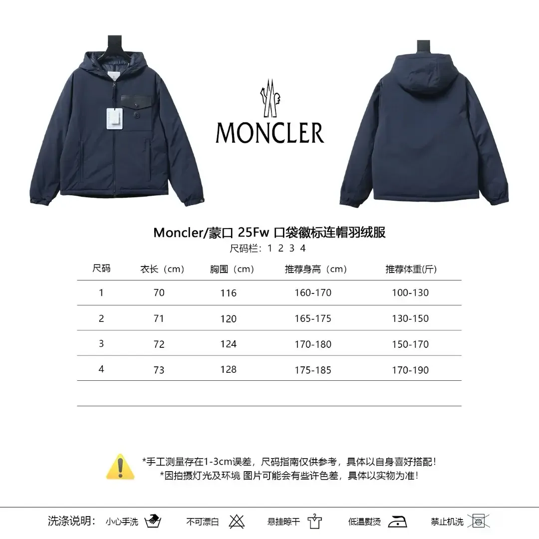 Moncler 25FW Pocket Logo Hooded Down Jacket