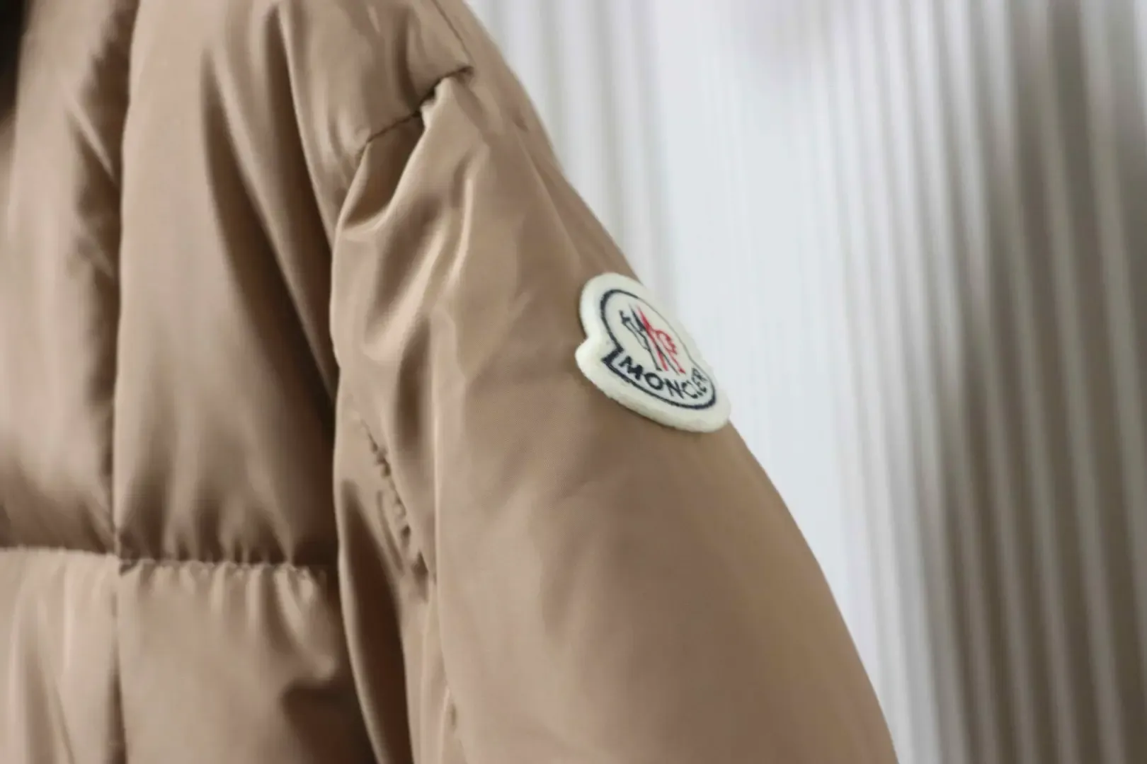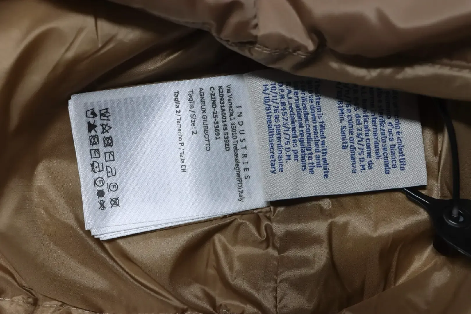 -58%- The Moncler Agneux down jacket combines warming material with elegant textures. The short silhouette is crafted from functional nylon with a glossy satin finish. The defined waist creates a flattering, feminine figure.