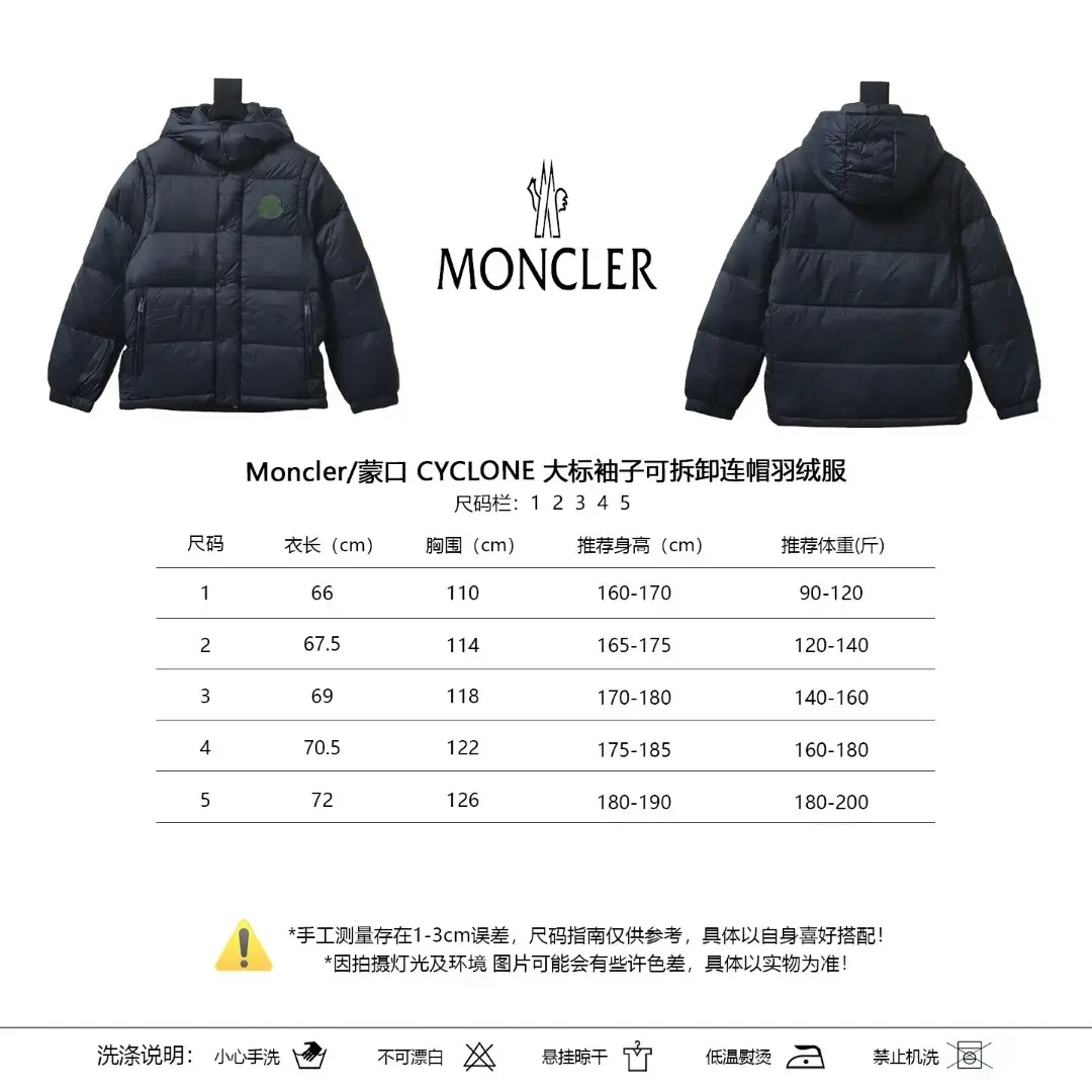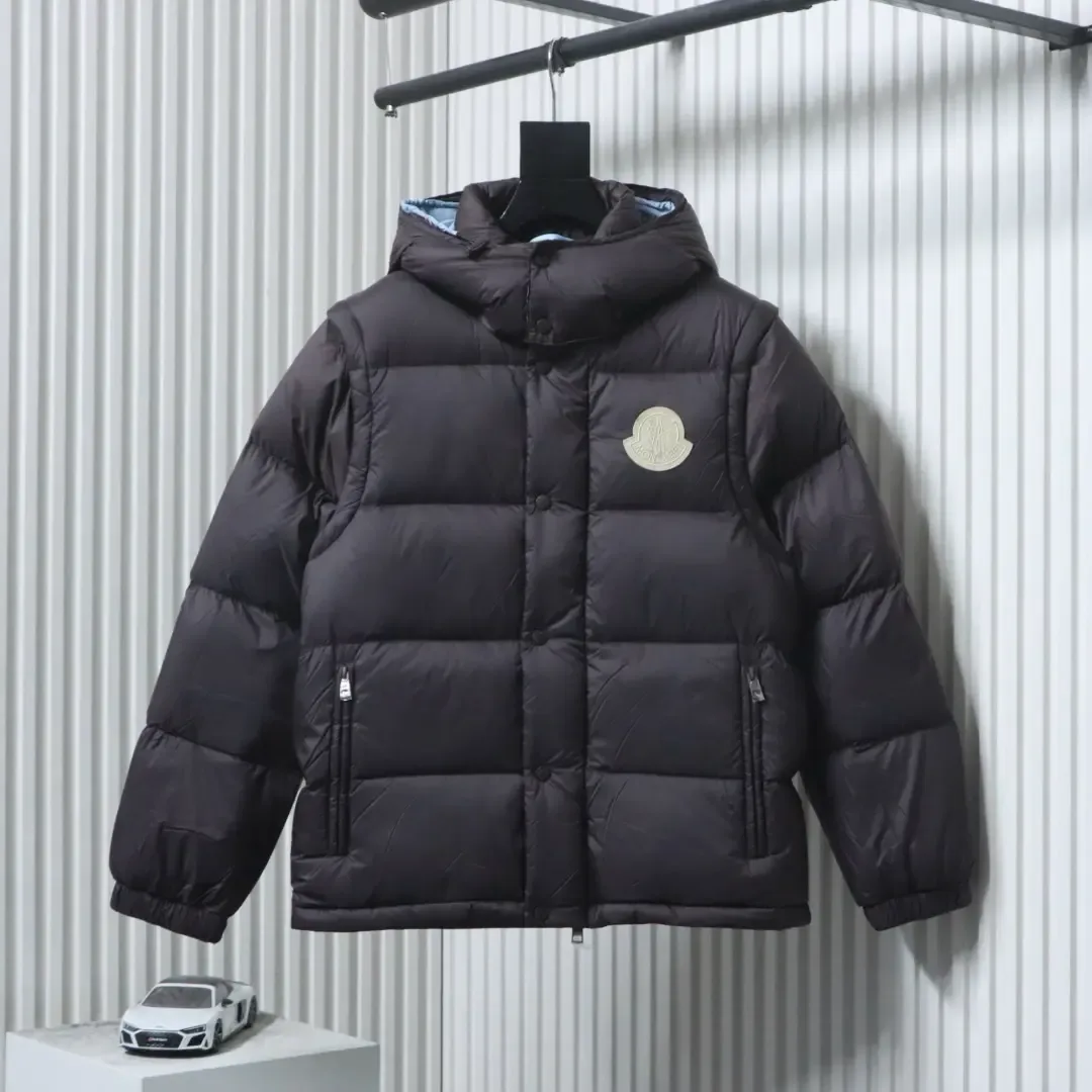 Moncler Cyclone Down Jacket With Large Logo Detachable Sleeves And Hood