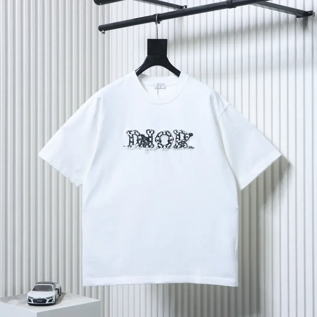 New short-sleeved shirt with a used look and patchwork letter embroidery