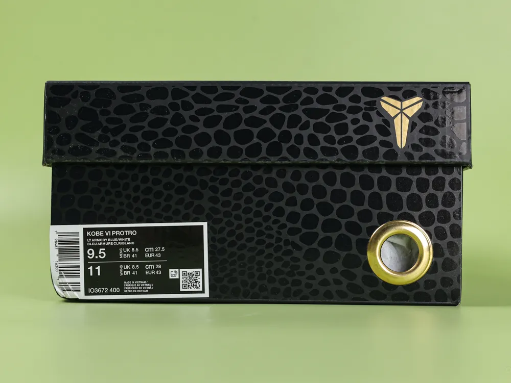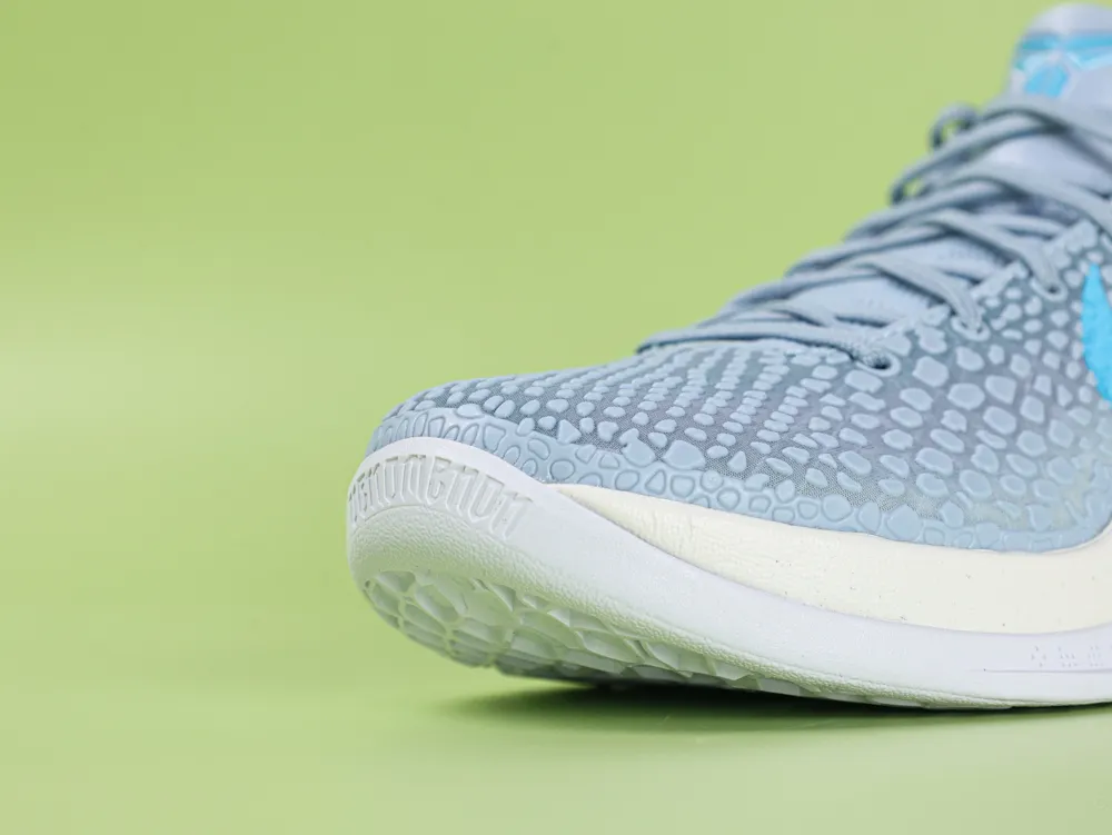 -16%- Nike recently introduced another Kobe 6 Protro in “Light Armory Blue,” a collaboration between rising WNBA star Caitlin Clark and the Kobe line. The shoe features a light blue upper, accented by a dark blue Swoosh and the Kobe logo on the tongue. A white midsole and heel, along with the classic Kobe 6 snake scale design, create a refreshing and aesthetically pleasing look.