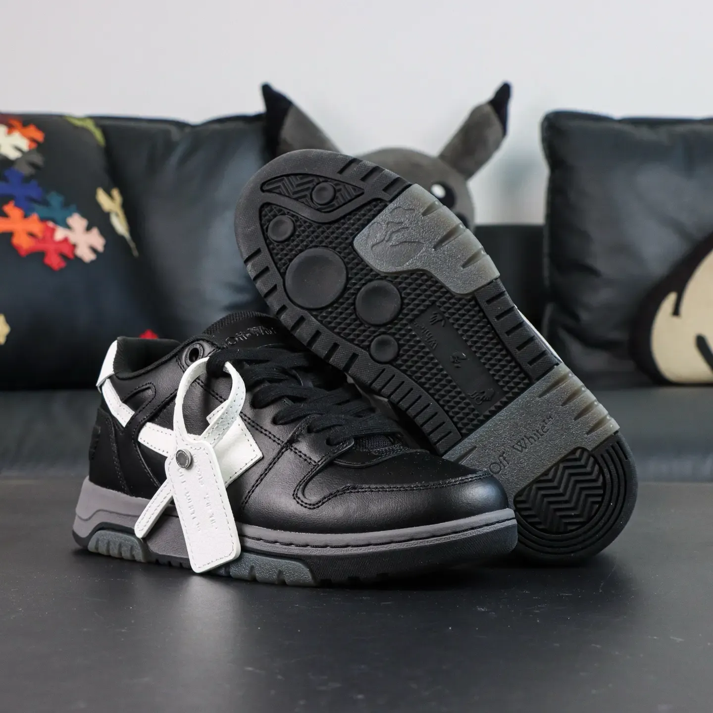 OFF-WHITE Out Of Office Casual Leather Sneakers Black and White