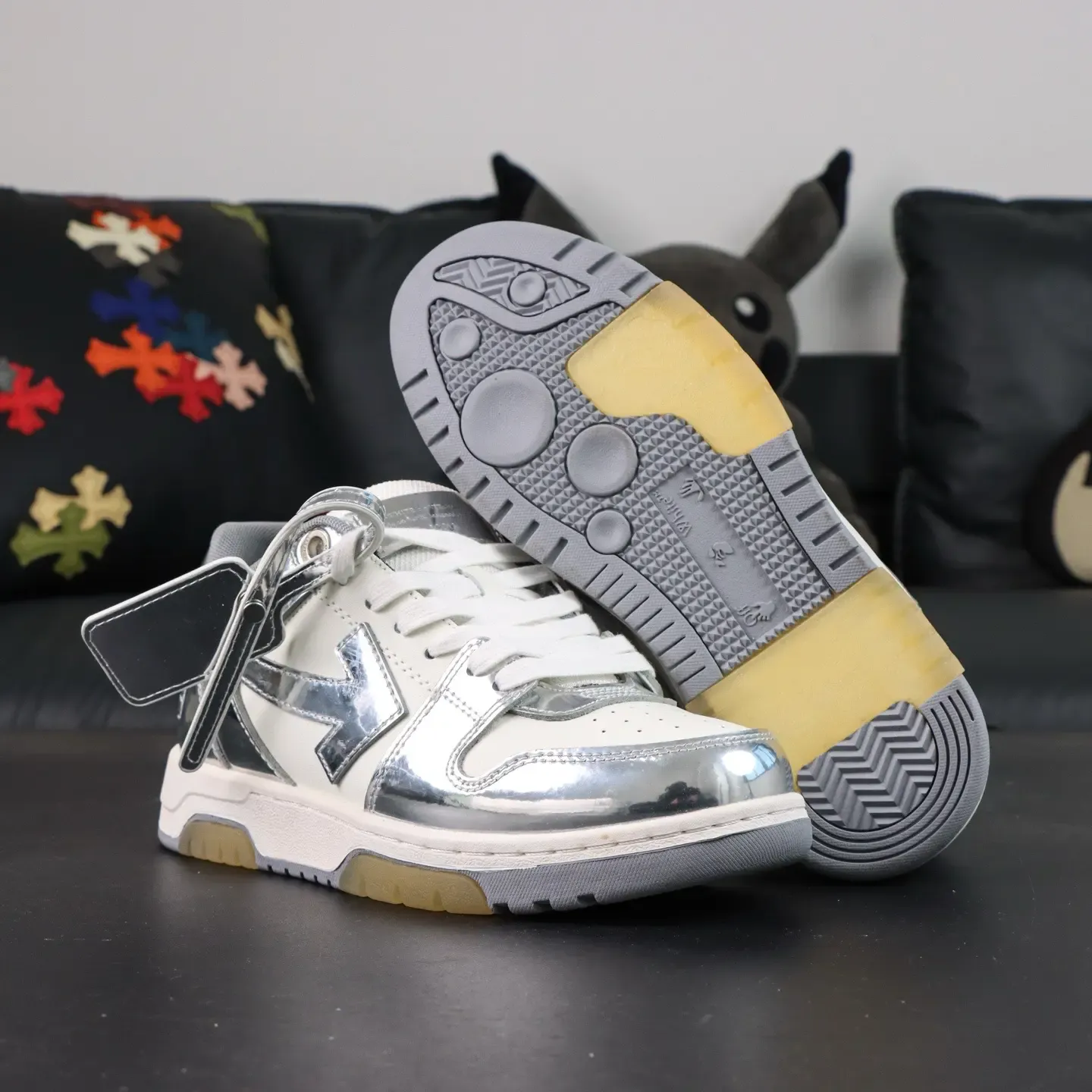 OFF-WHITE Out Of Office fashion sneakers silver white