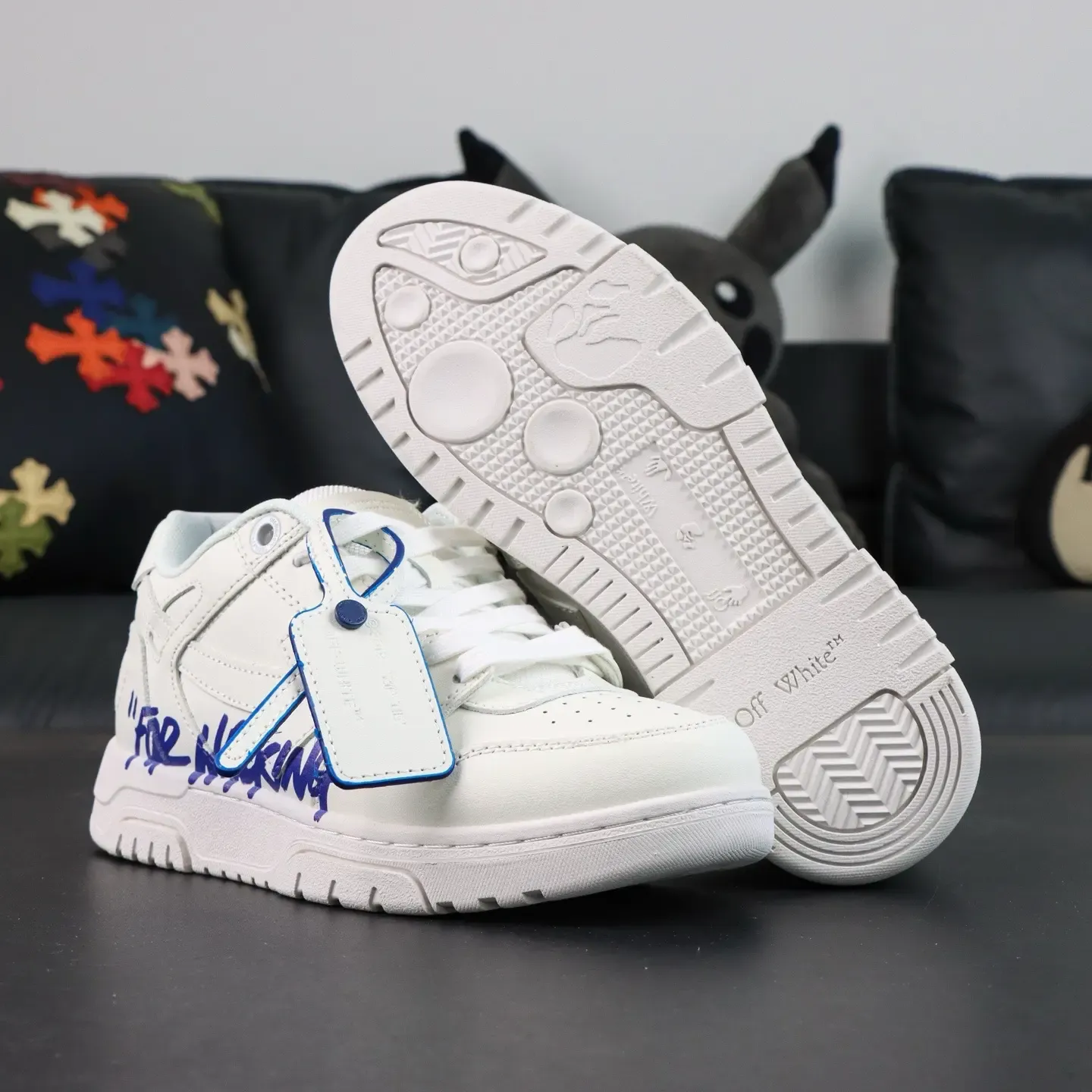 OFF-WHITE Out Of Office Leather Sneakers White with Blue