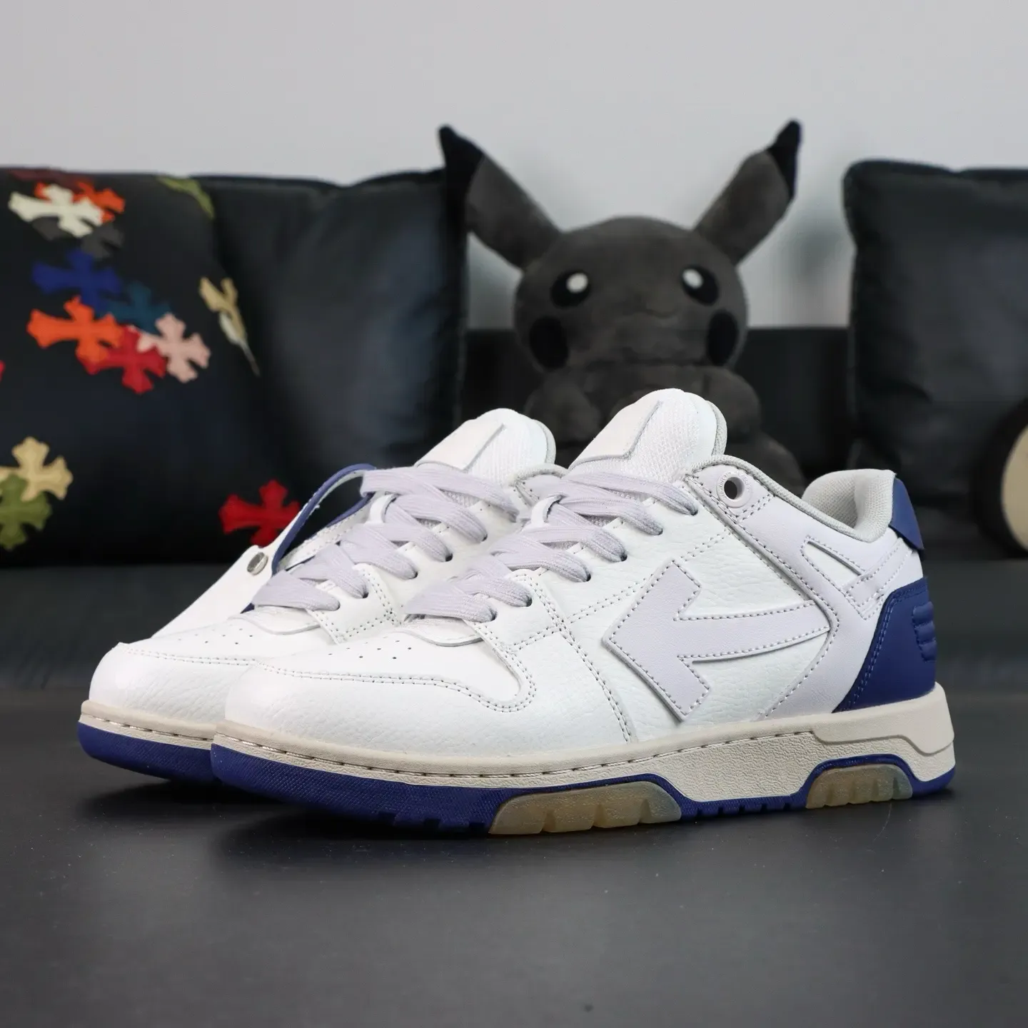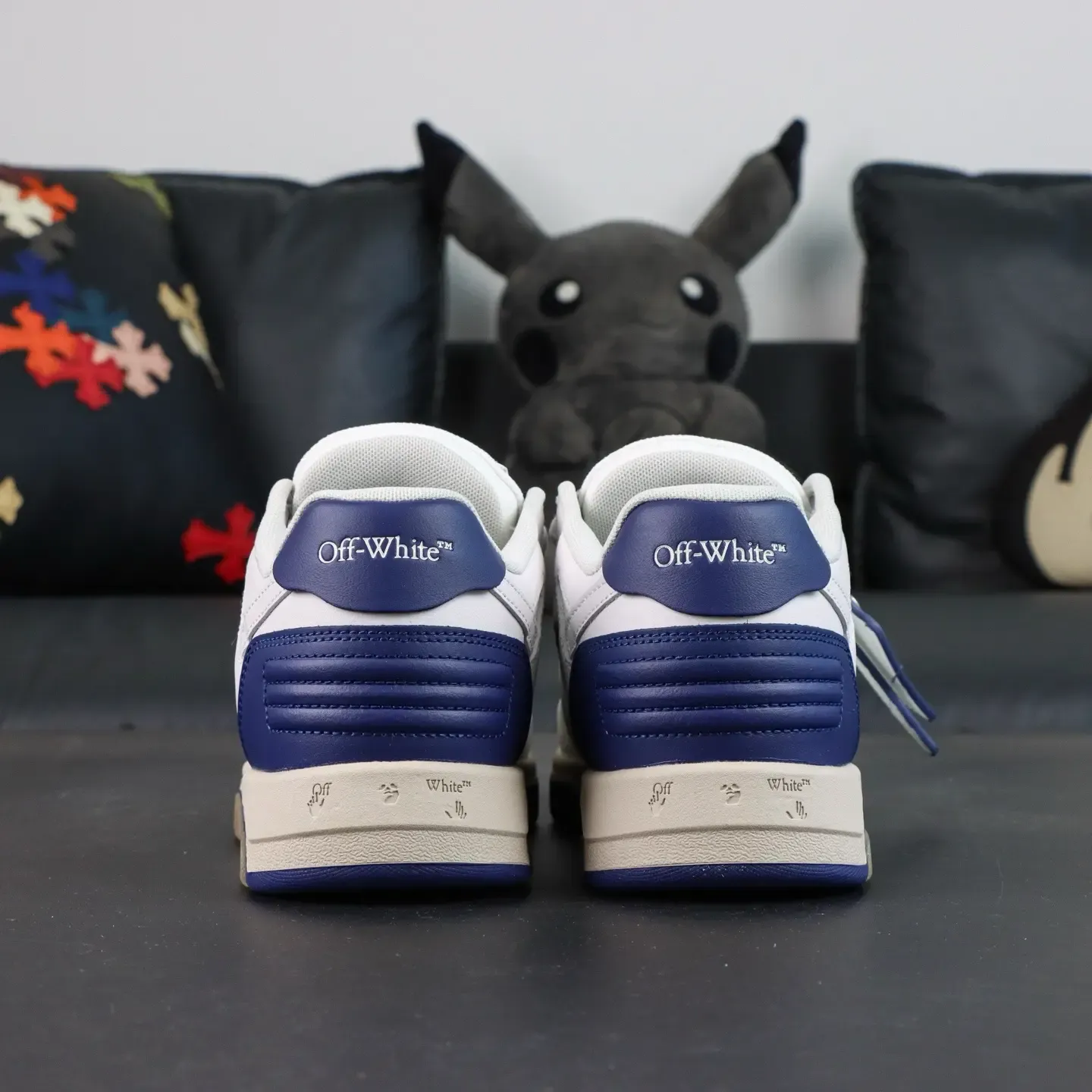 OFF-WHITE Out Of Office Leather Sneakers White with Blue