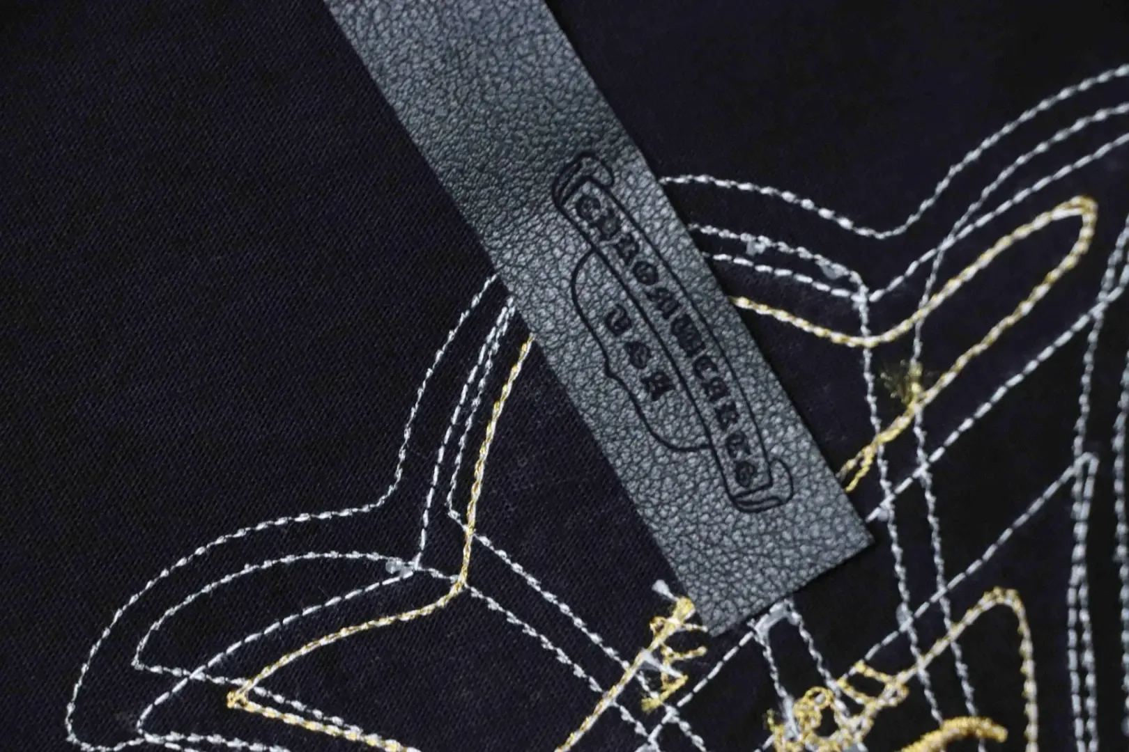 Short-sleeved shirt with leather label in a cross pattern