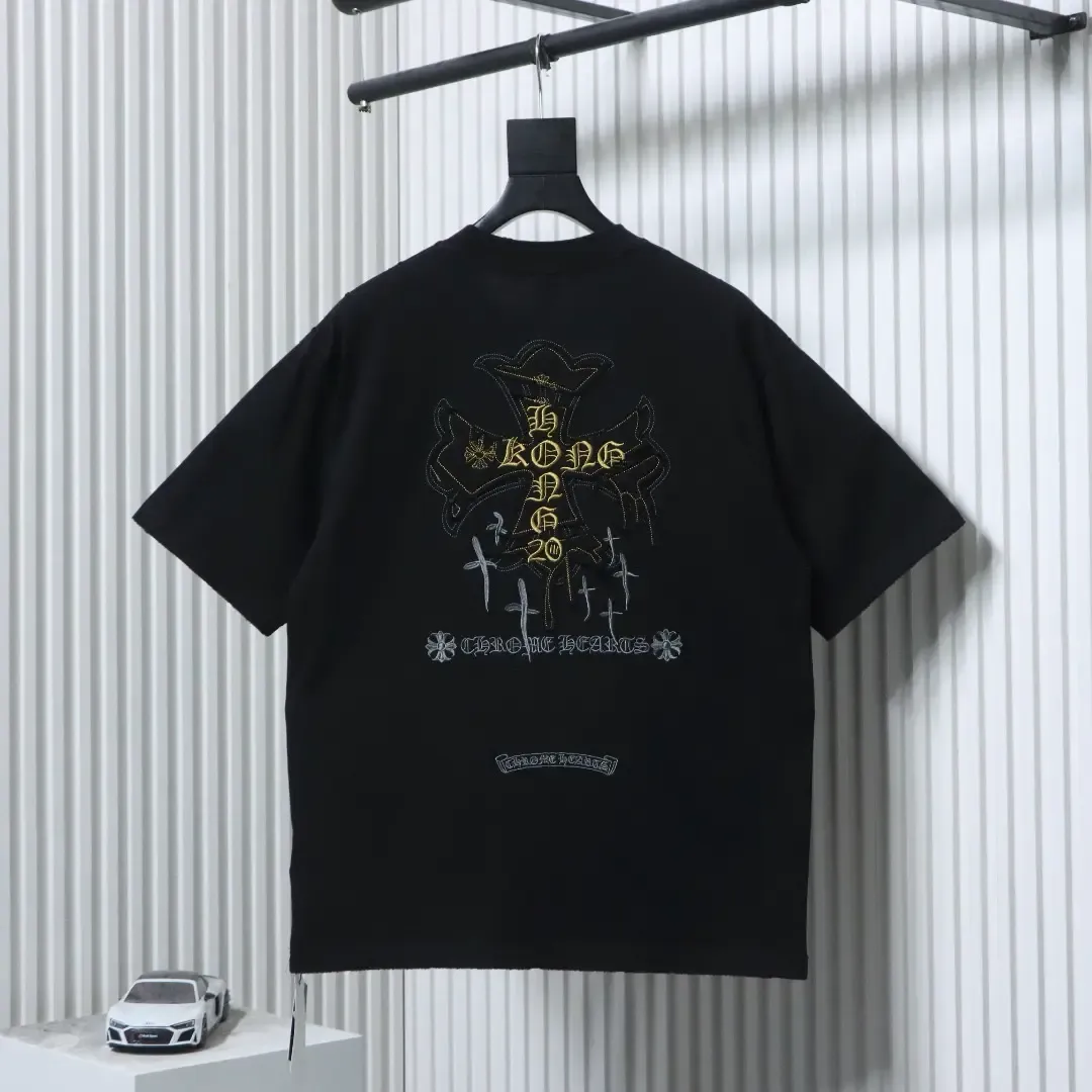 Robust, short-sleeved shirt with Sanskrit cross embroidery