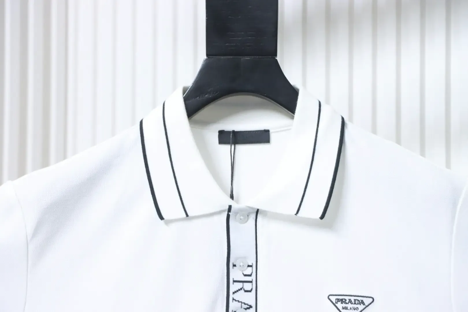 - The button placket features a ribbed logo design, and the classic triangular Milanese logo embroidery makes this garment an excellent choice.