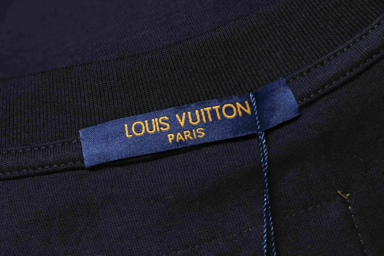 Blue short-sleeved shirt with embroidered letter