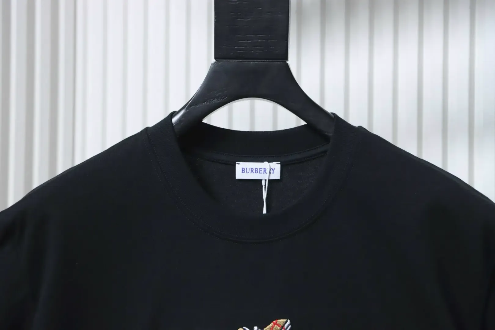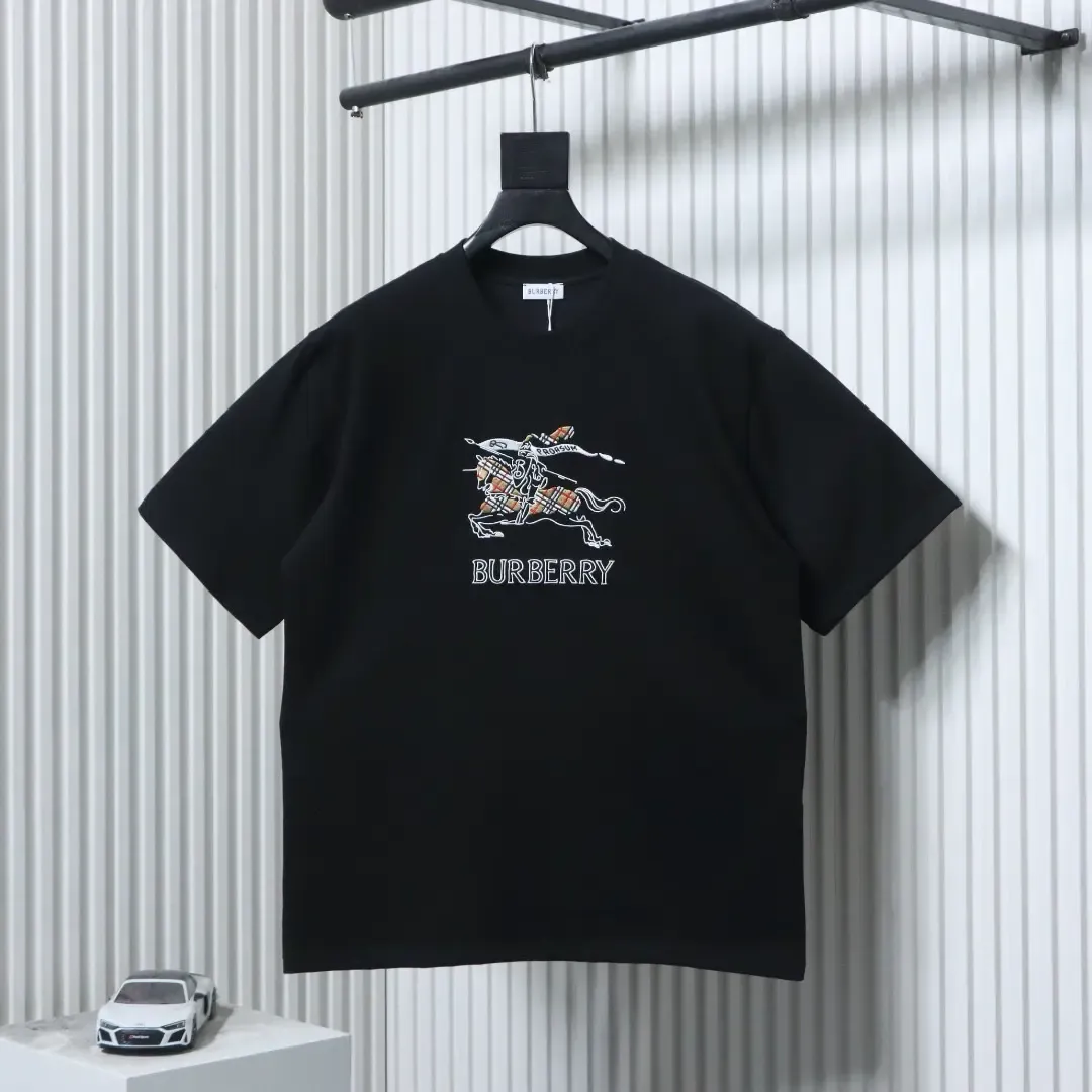 Short-sleeved shirt with sketched check pattern and embroidered war horse motif
