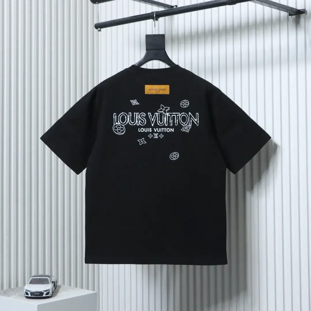 Short-sleeved T-shirt with speckled logo embroidery pattern and triangular logo print on the back