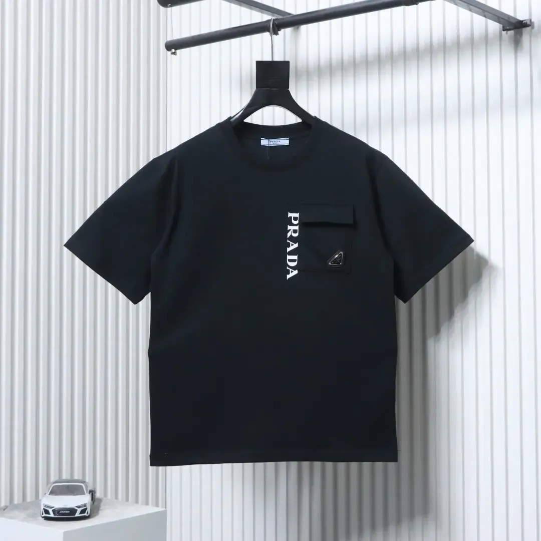 Short-sleeved T-shirt with letter print, pocket and triangle logo
