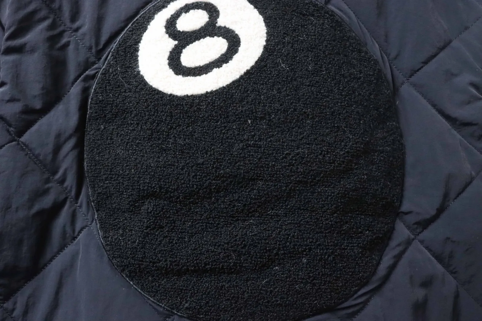 Stussy Black Puffer Jacket with 8 Billard Zip