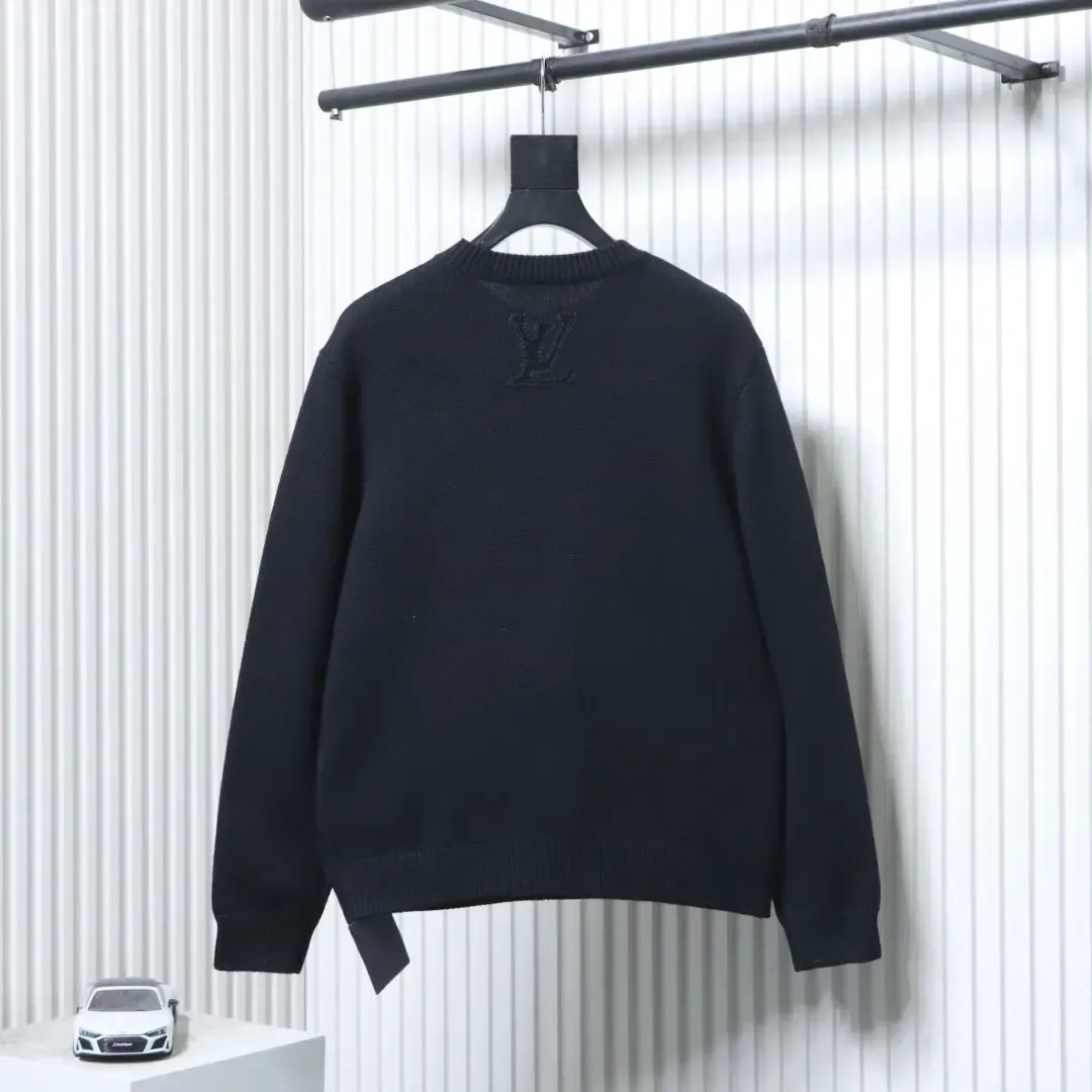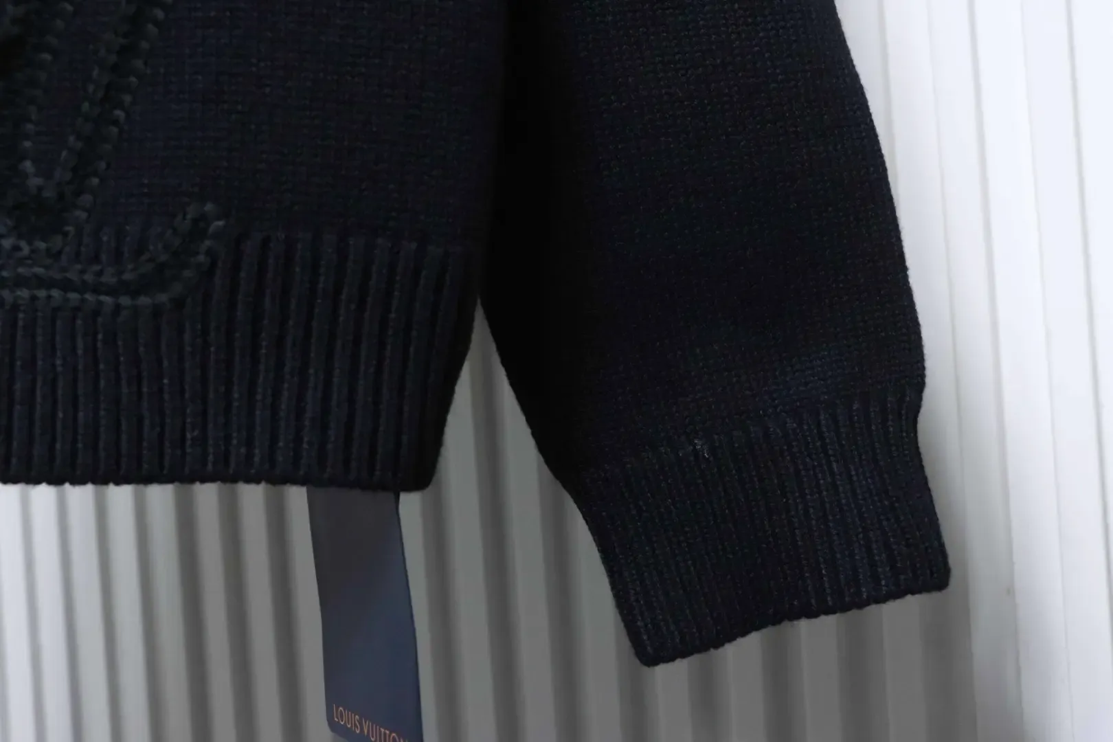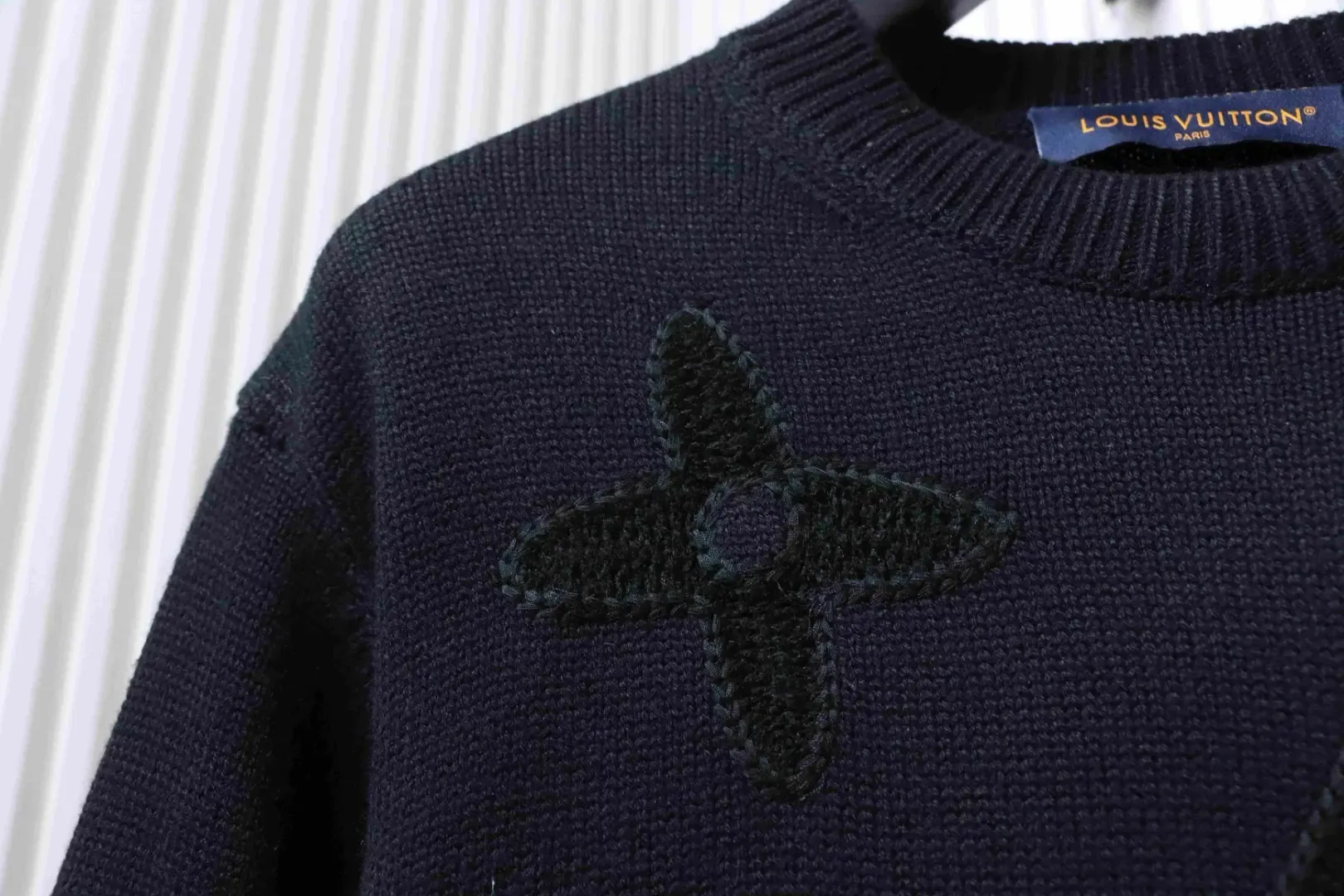 Sweater Made Of Dark Jacquard Fabric With Embroidered Monogram Pattern