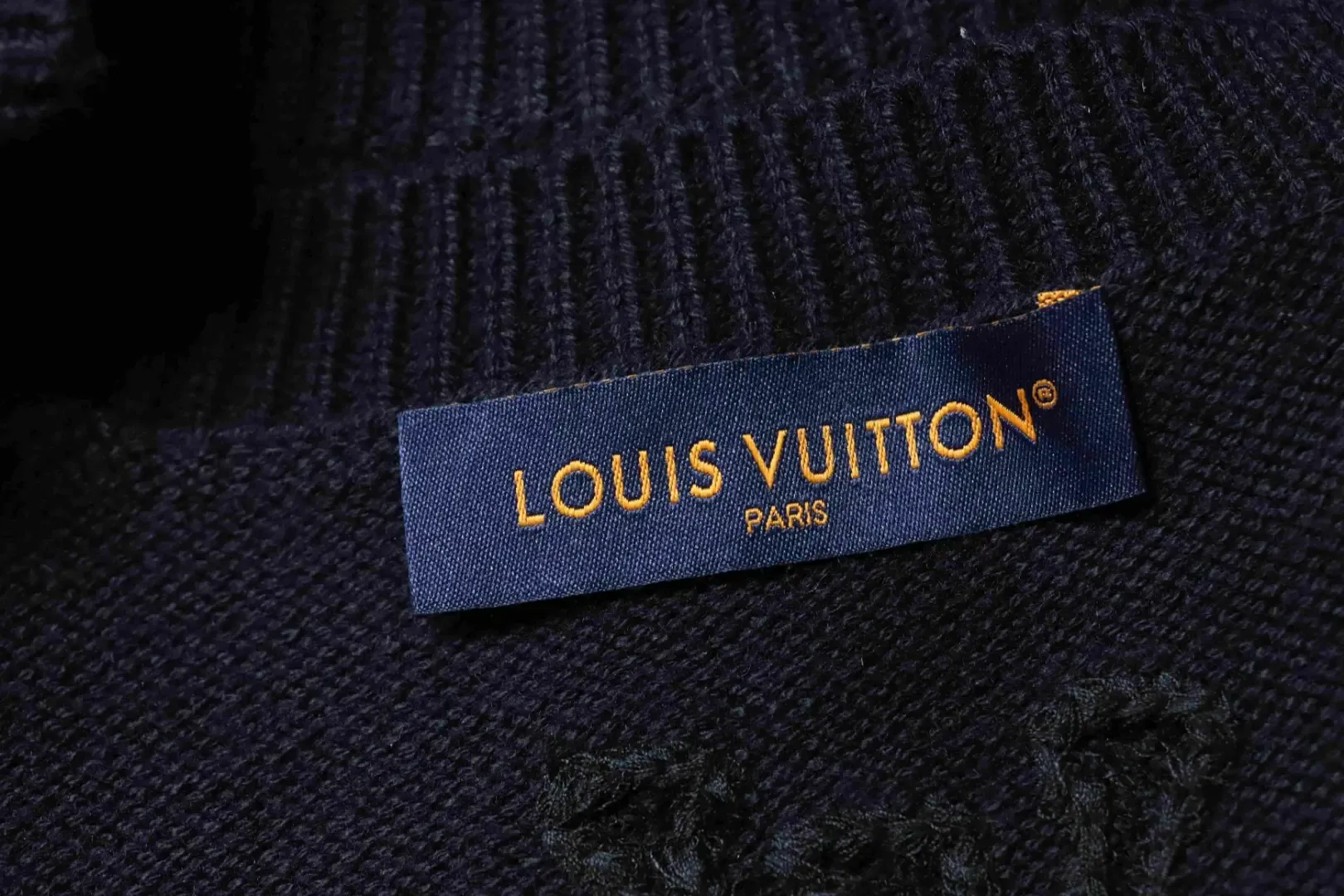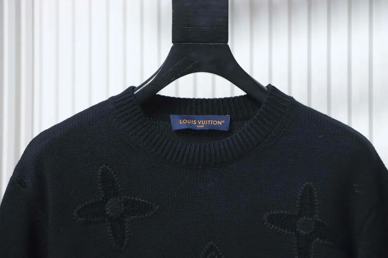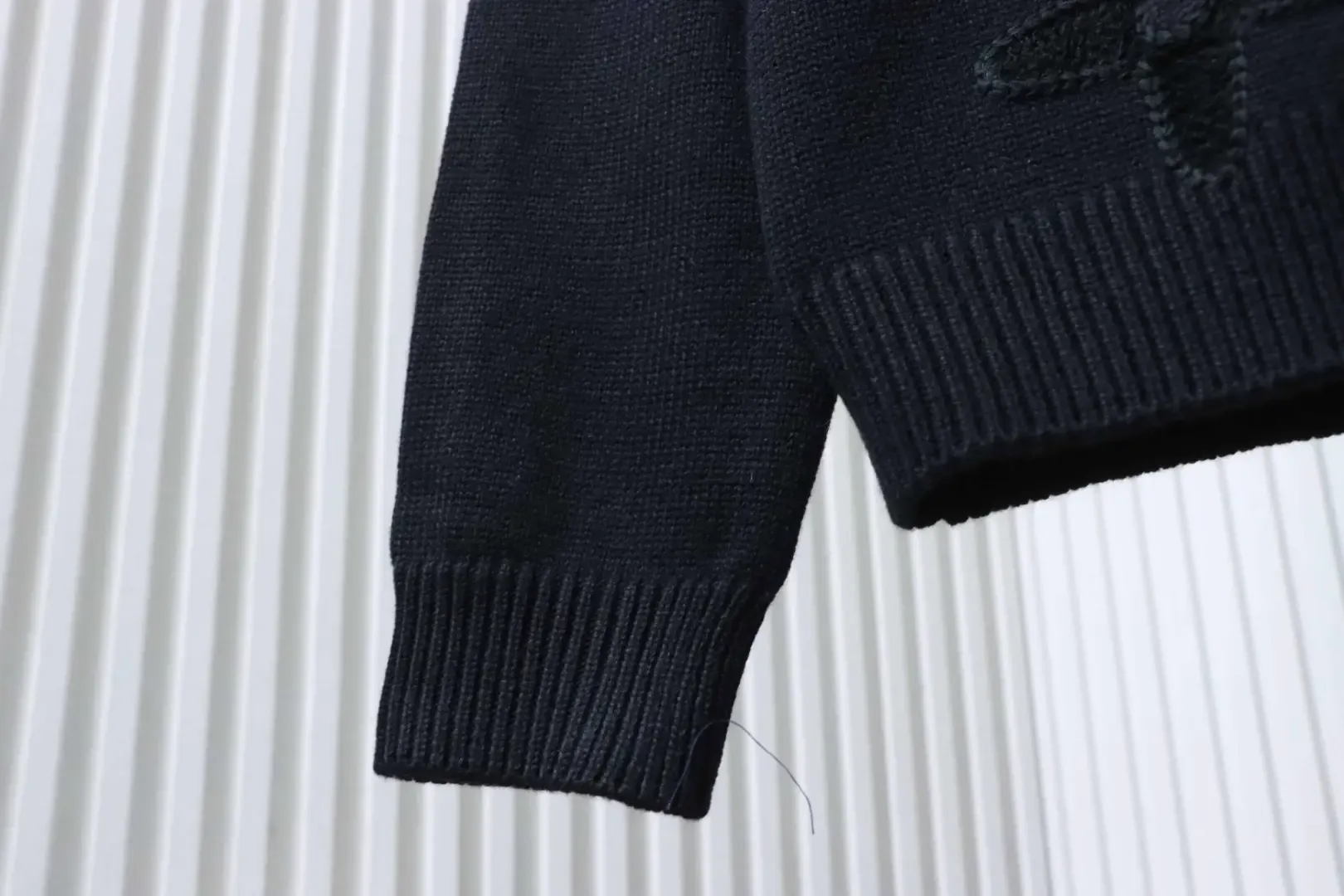 Sweater Made Of Dark Jacquard Fabric With Embroidered Monogram Pattern