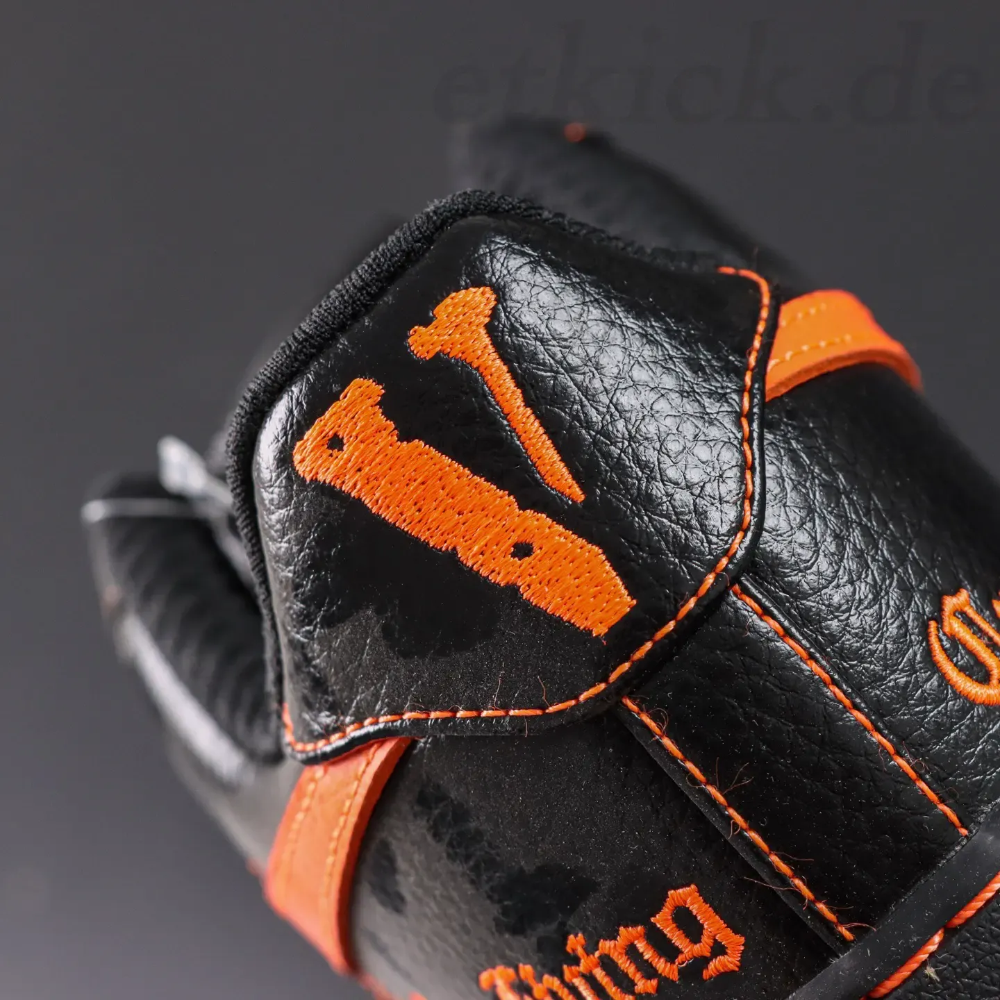 - The orange Swoosh logo on the side complements the “VLONE” lettering on the heel.