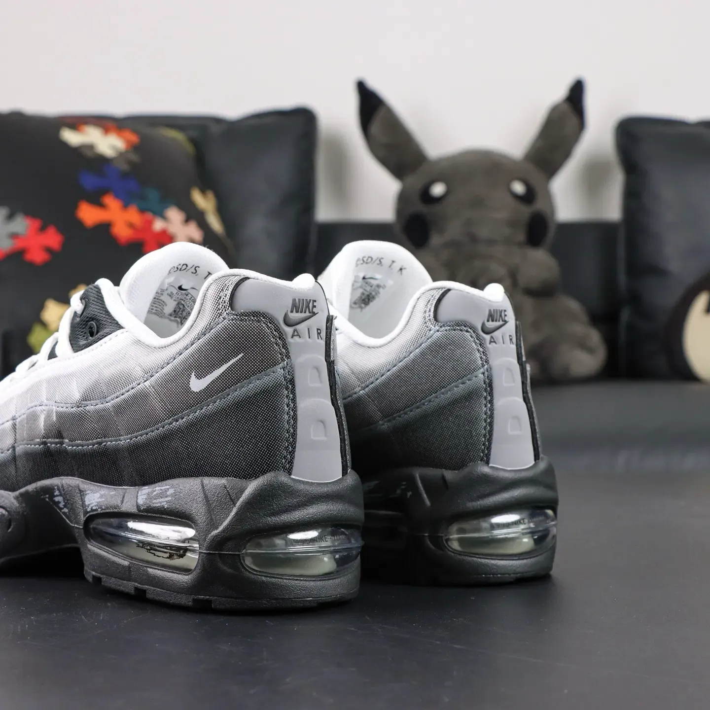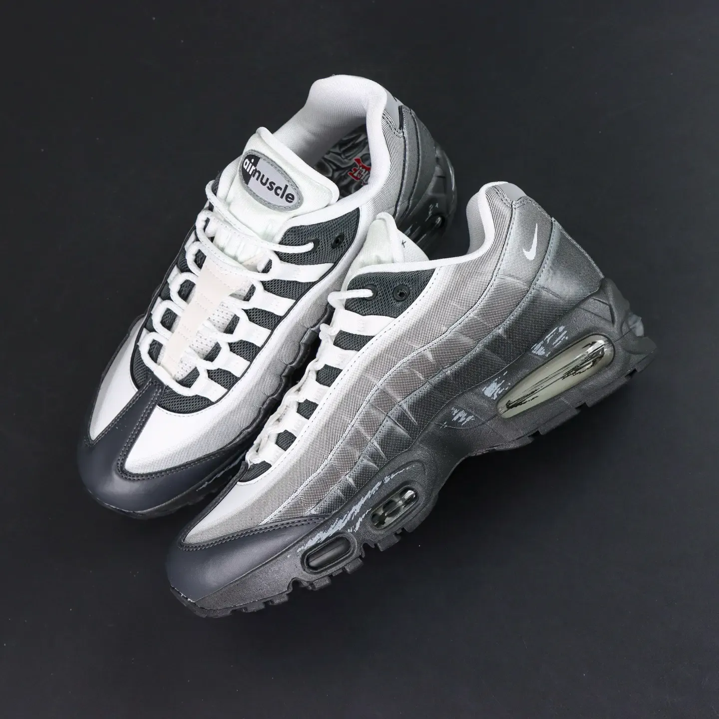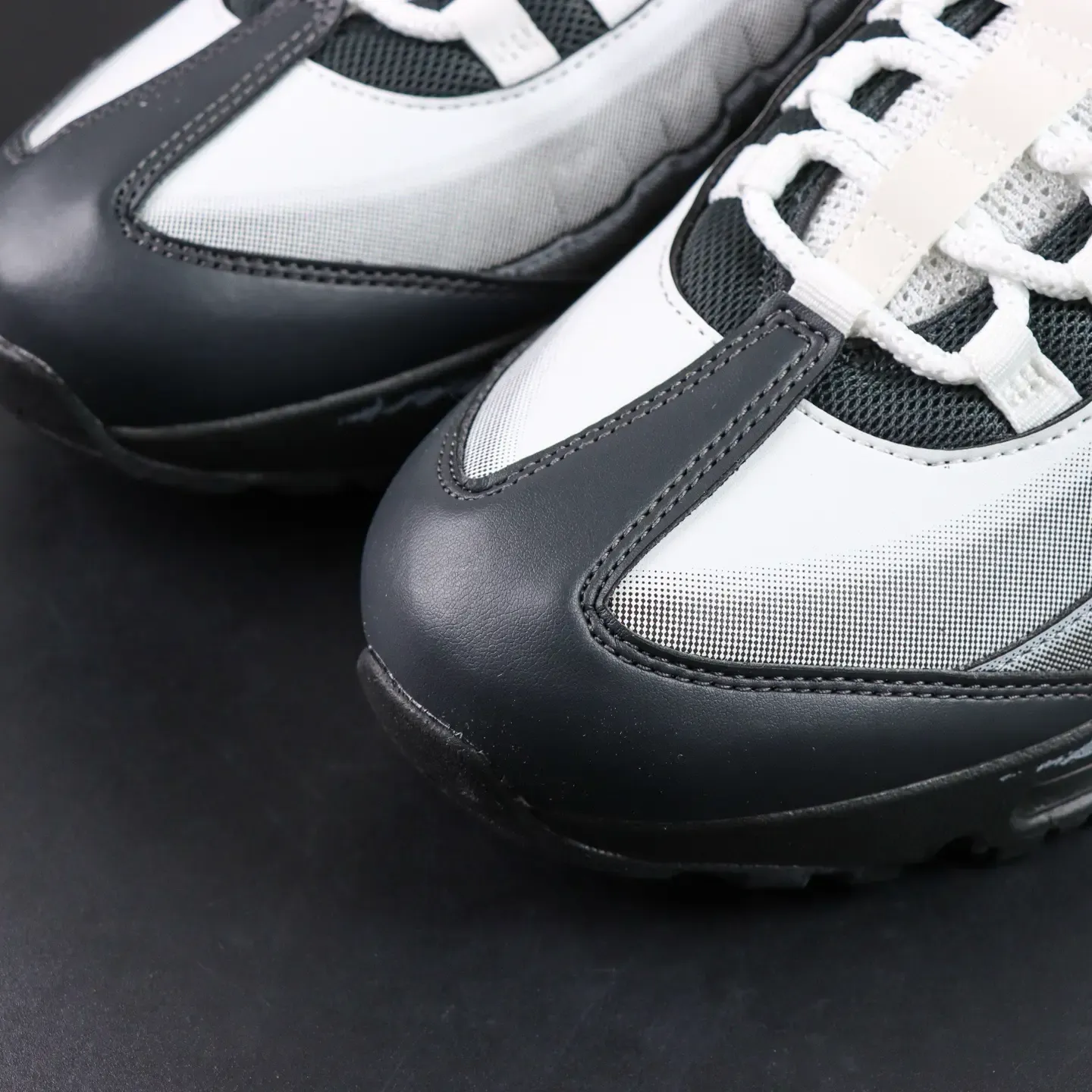 - The Air Max 95 features two independent, blow-molded Air-Sole units and marks the first time a visible Air unit has been integrated into the forefoot. The Swoosh logo is placed on the heel of the shoe, adding a striking stylistic accent.