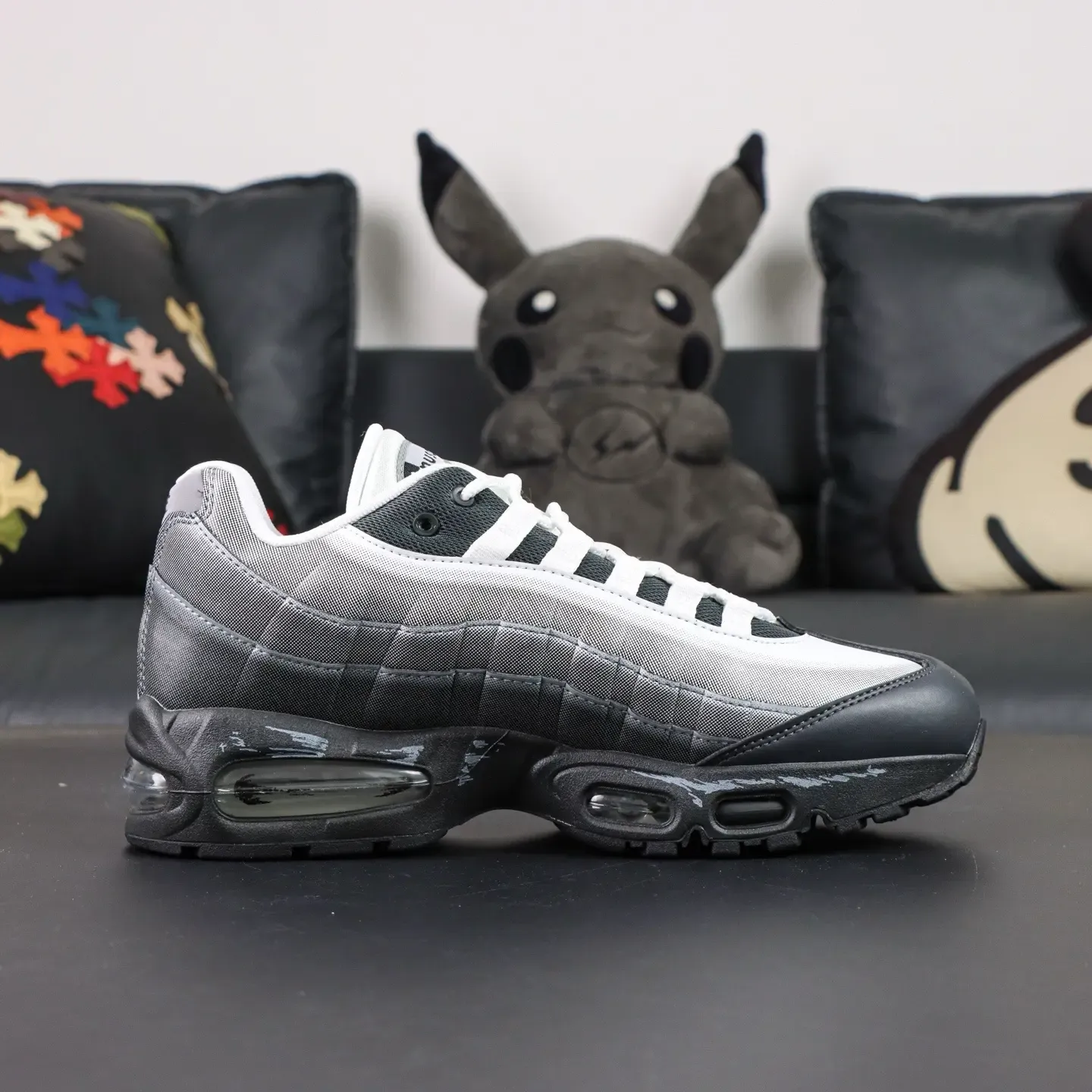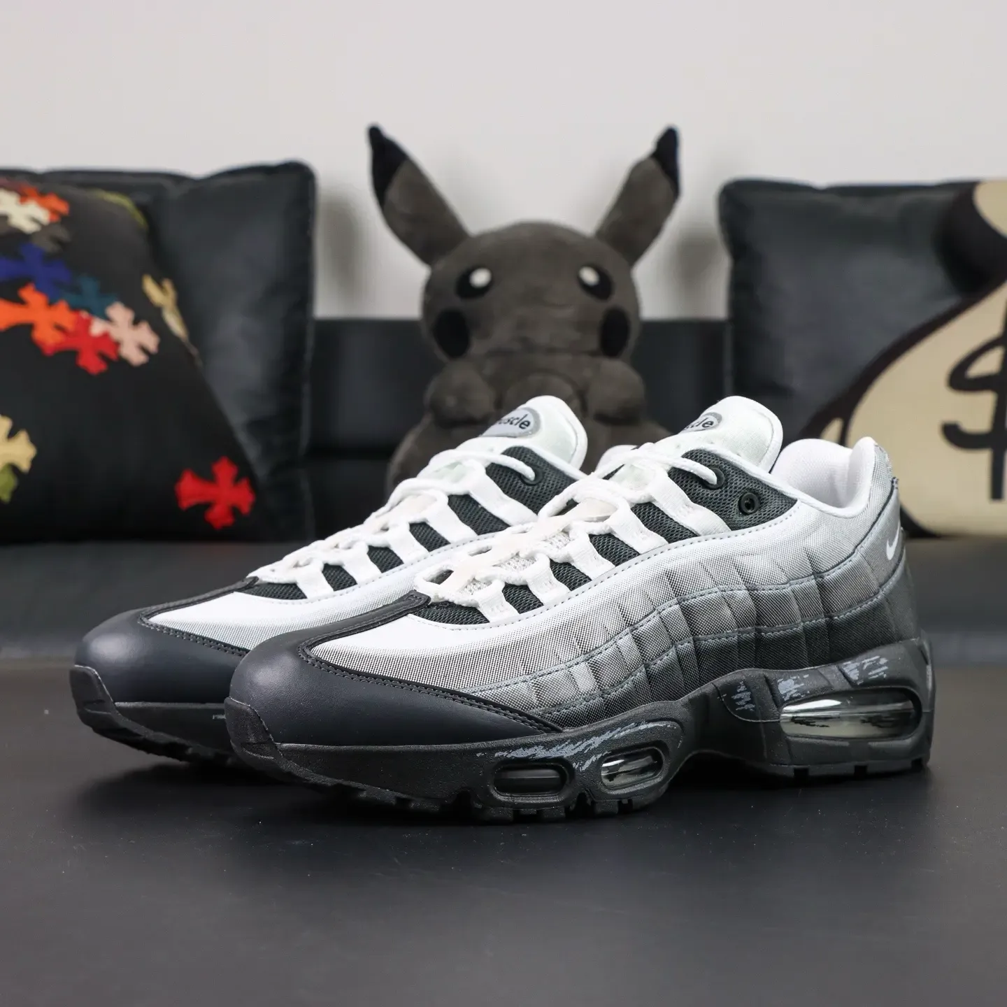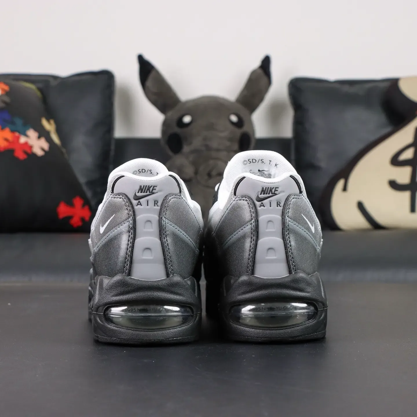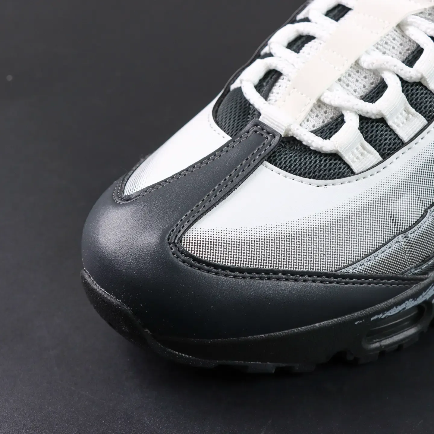 - The Air Max 95 features two independent, blow-molded Air-Sole units and marks the first time a visible Air unit has been integrated into the forefoot. The Swoosh logo is placed on the heel of the shoe, adding a striking stylistic accent.
